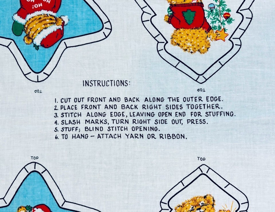 Vtg 80s SHIRT TALES Cut Sew Fabric panel Christmas Ornaments Uncut NOS RARE