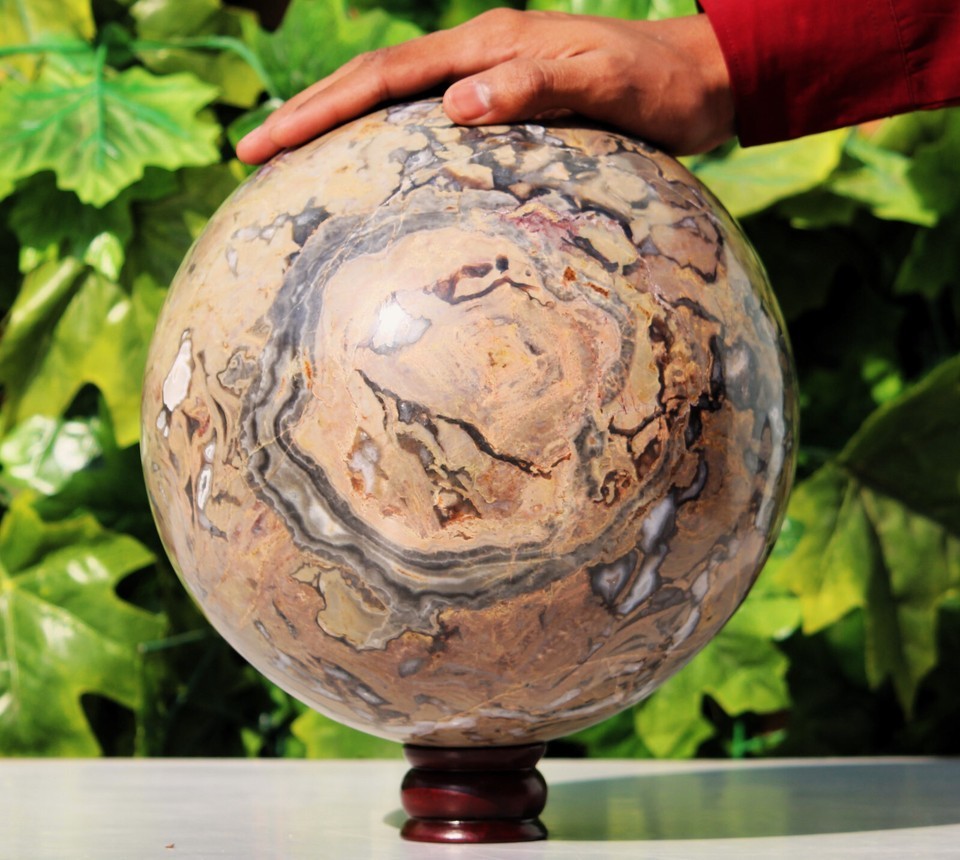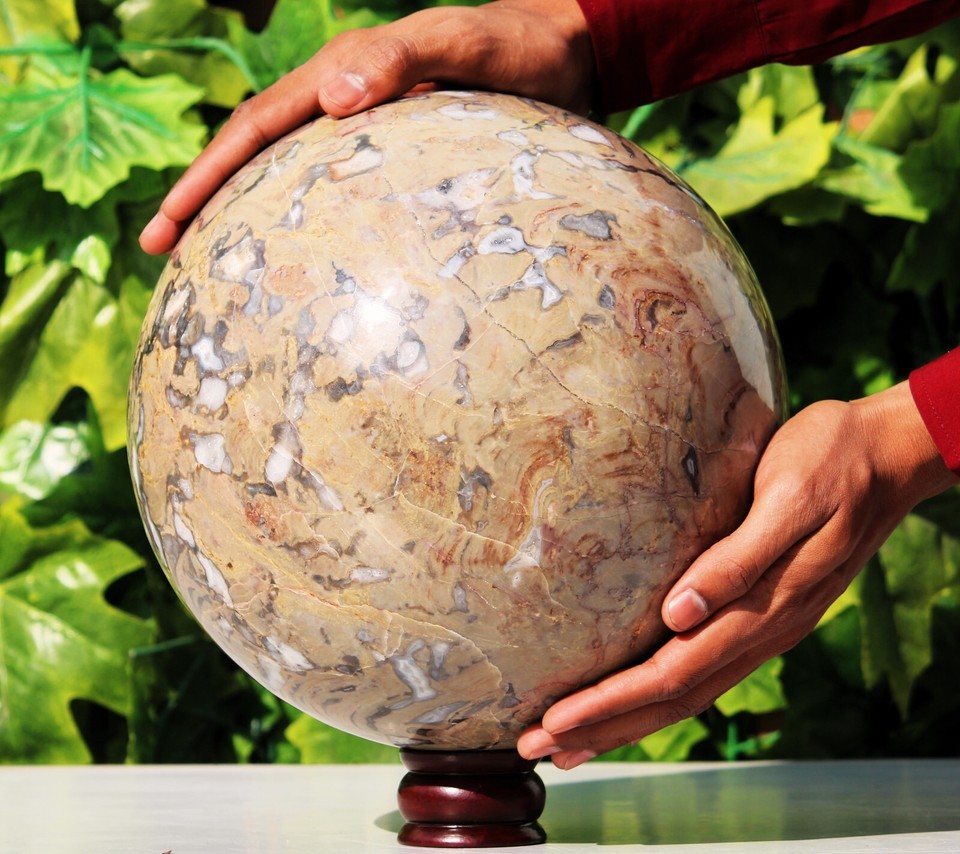 The stone sphere is ideal for those interested in chakra healing and metaphysical concepts. Its size and unique porcelain jasper material make it a special piece for meditation and healing. This item is perfect for anyone who wants to explore the world of metaphysical and new age ideas.