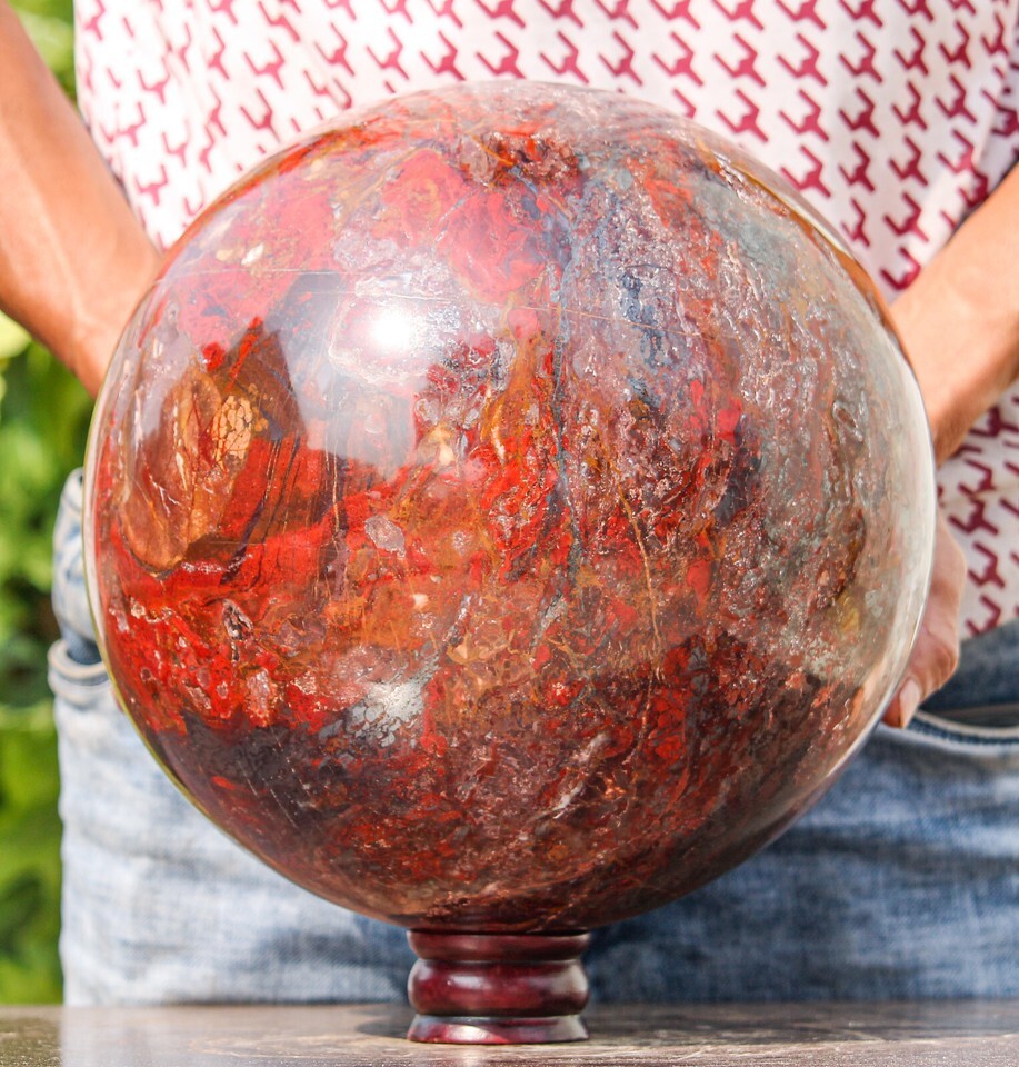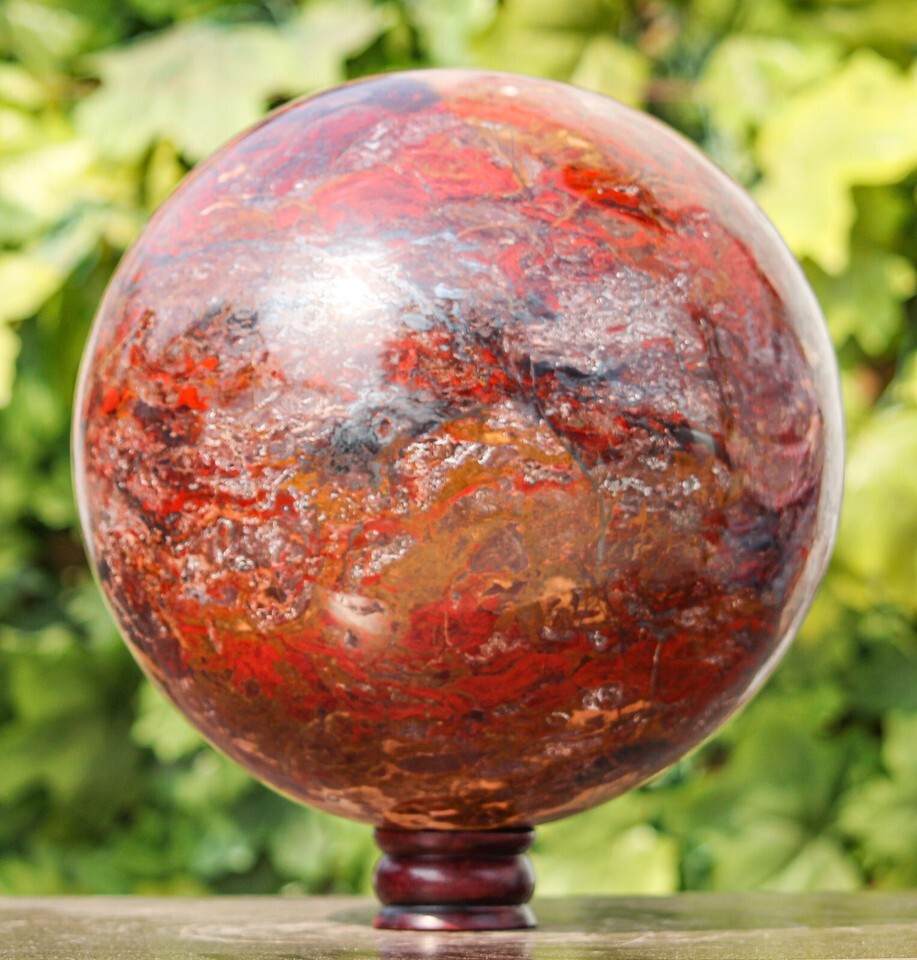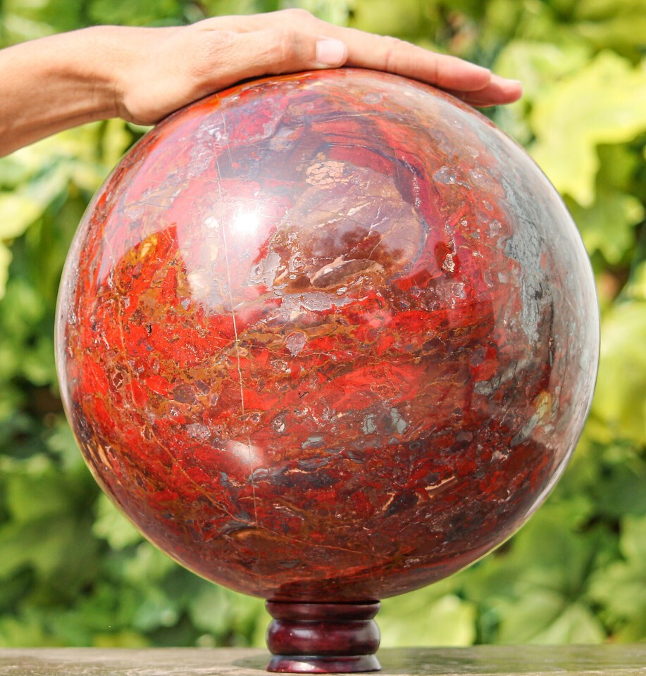 XL 255MM Red Brecciated Jasper Crystal Healing Chakra Metaphysical Stone Sphere