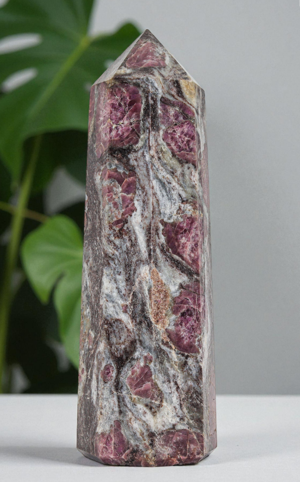 Superb 160MM Polished Pink Eudialyte Crystal Healing Stone Wand Statue Tower Specimen For Healing, Fengshui, Reiki, Aura, Meditation, Metaphysical, Decoration and Minerals Specimen.