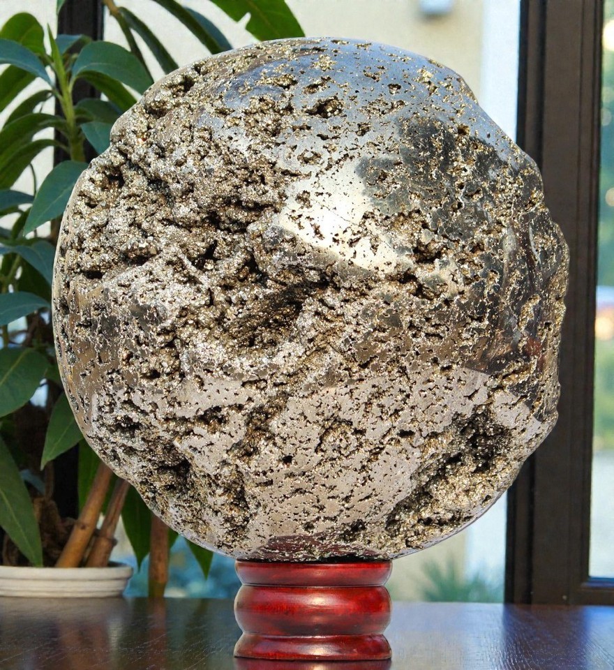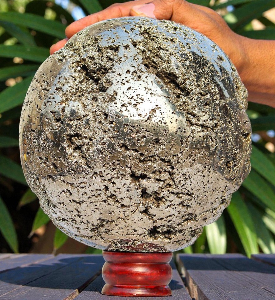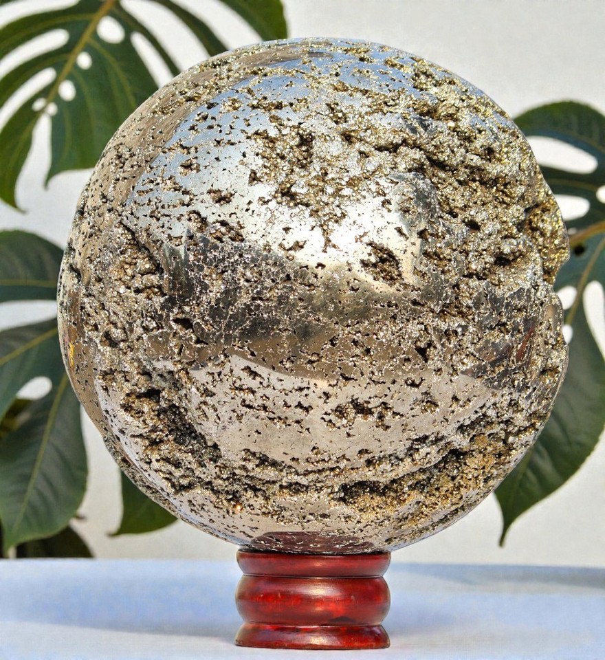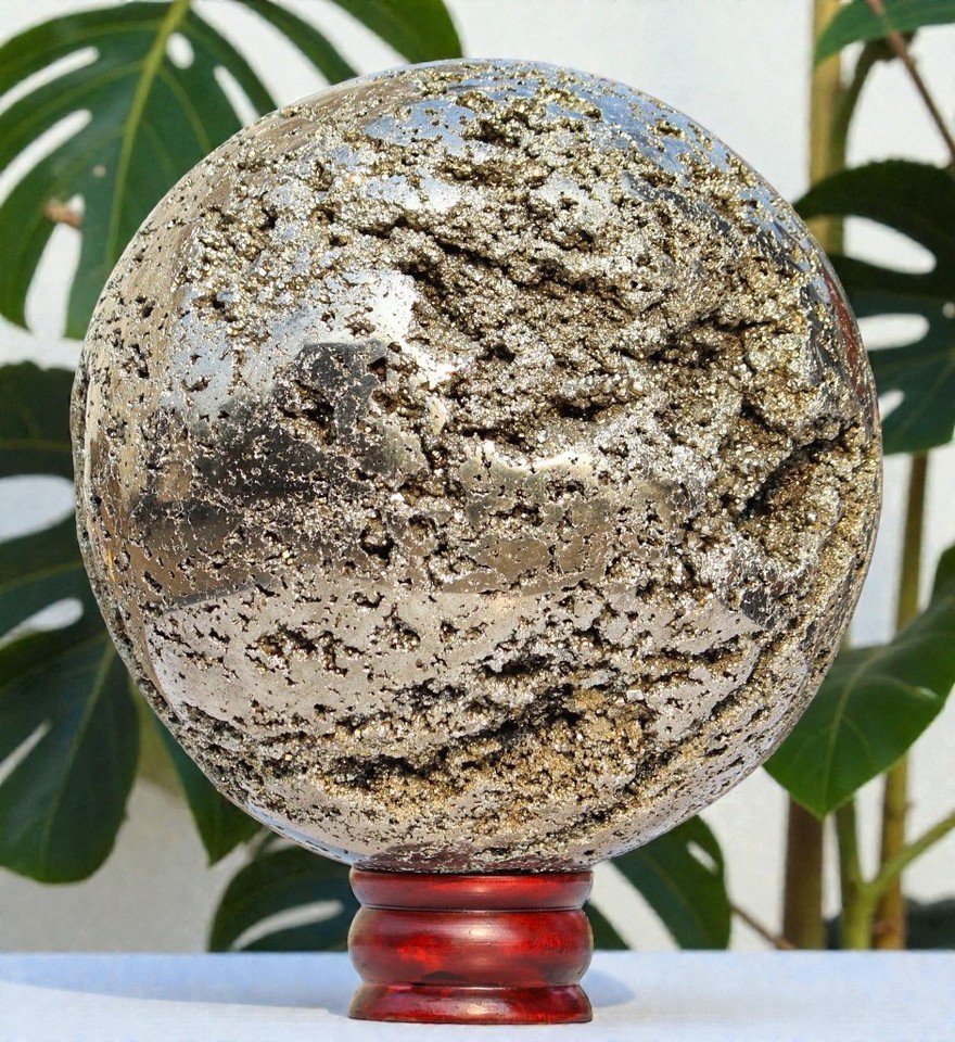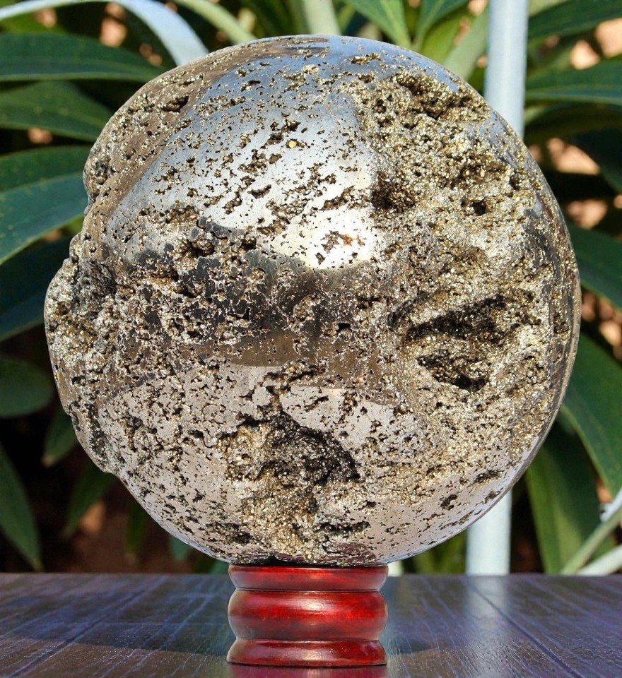 A+ GOLDEN PYRITE Crystal Sphere Healing Metaphysical Stone Decor Gift 190mm