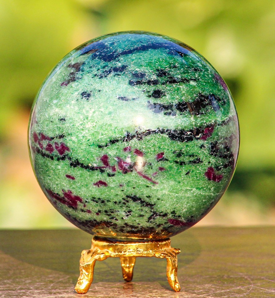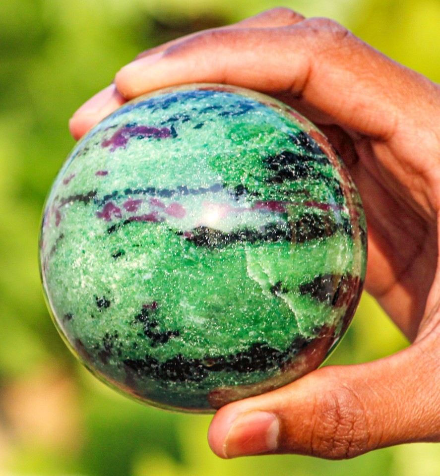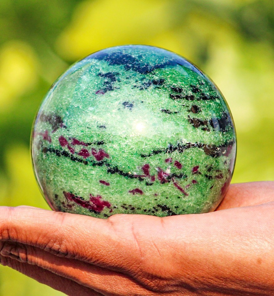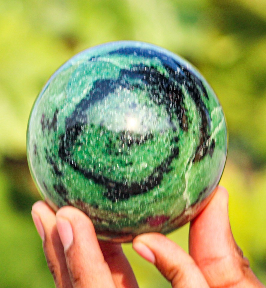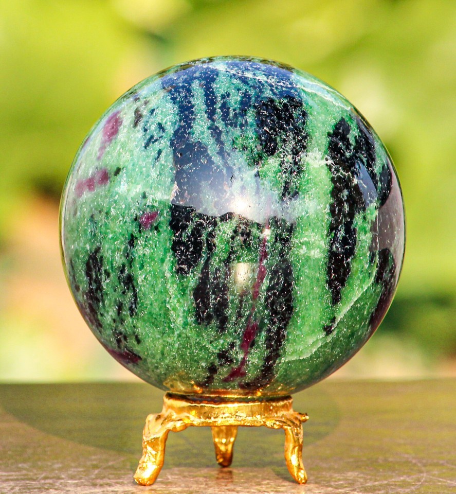 Beautiful Large 80mm Natural Polished Green Ruby Zoisite Crystal Healing Stone Sphere Specimen For Healing, Fengshui, Reiki, Aura, Meditation, Metaphysical, Decoration and Minerals Specimen.