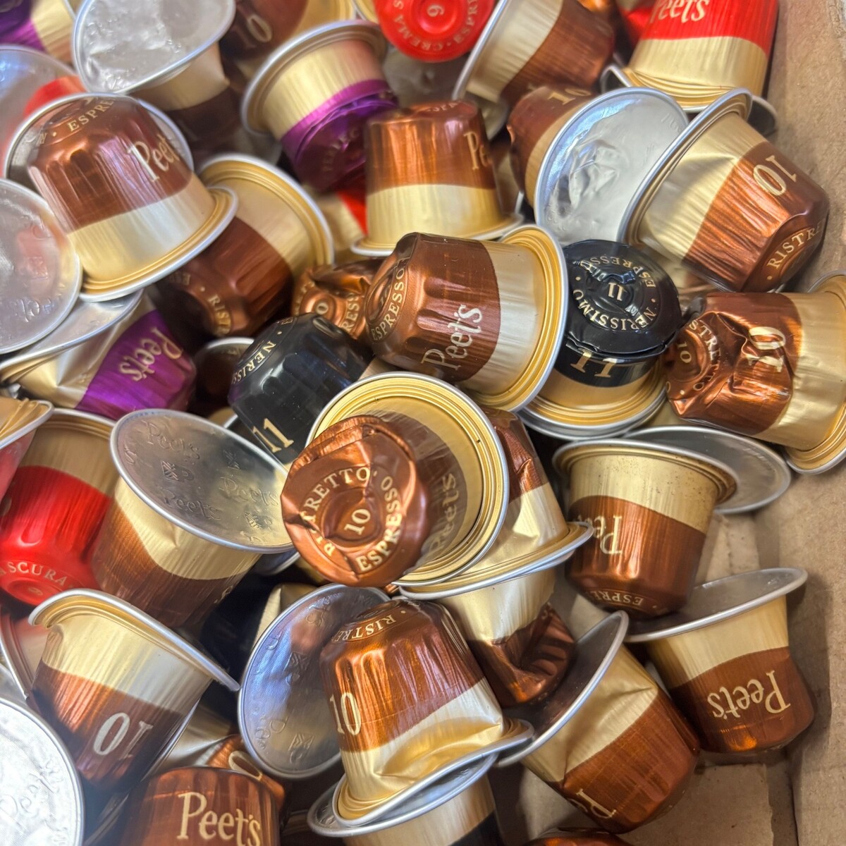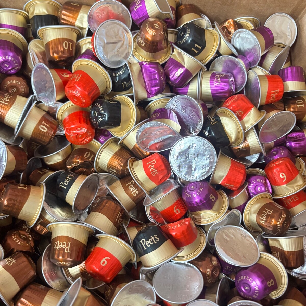 1,000 DAMAGED Peet's Coffee brand, Medium and Dark Roast Espresso Capsules Variety Pack, Compatible with Nespresso Original Machine - LOOSE/BULK lot.