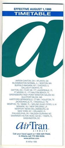 Air Tran Airways System Timetable August 1, and 50 similar items