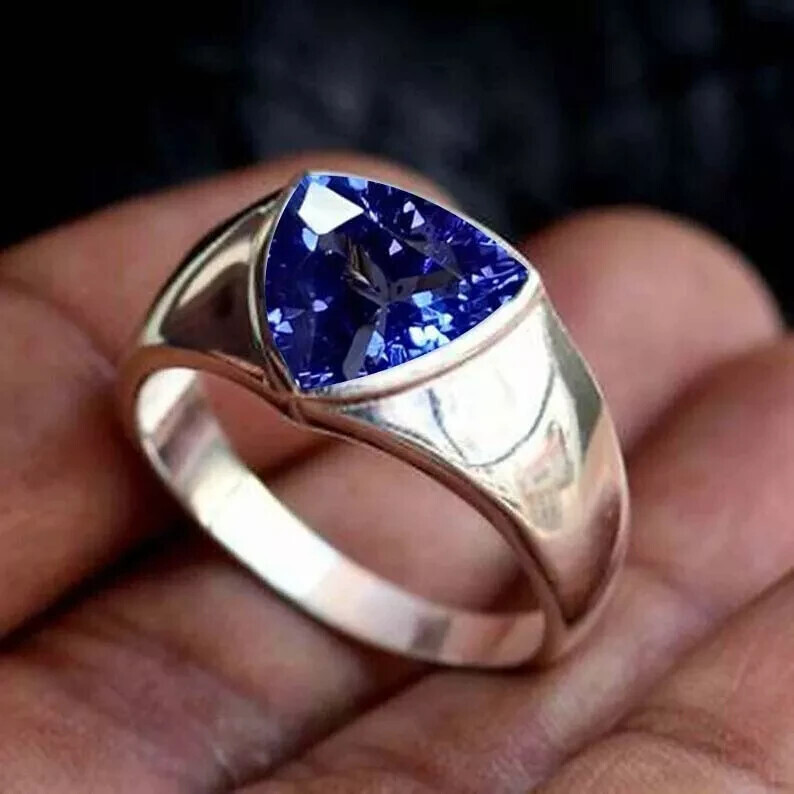 Trillion Cut Tanzanite Ring 925 Sterling Silver Fine Jewelry Men's Wedding Gifts