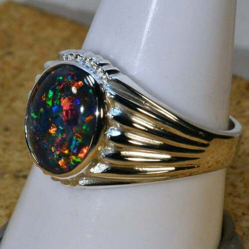 925 Sterling Silver Gorgeous 7.25 ct opal Handmade Mens Ring