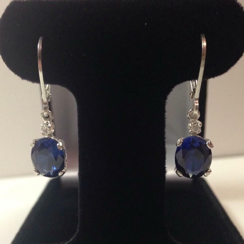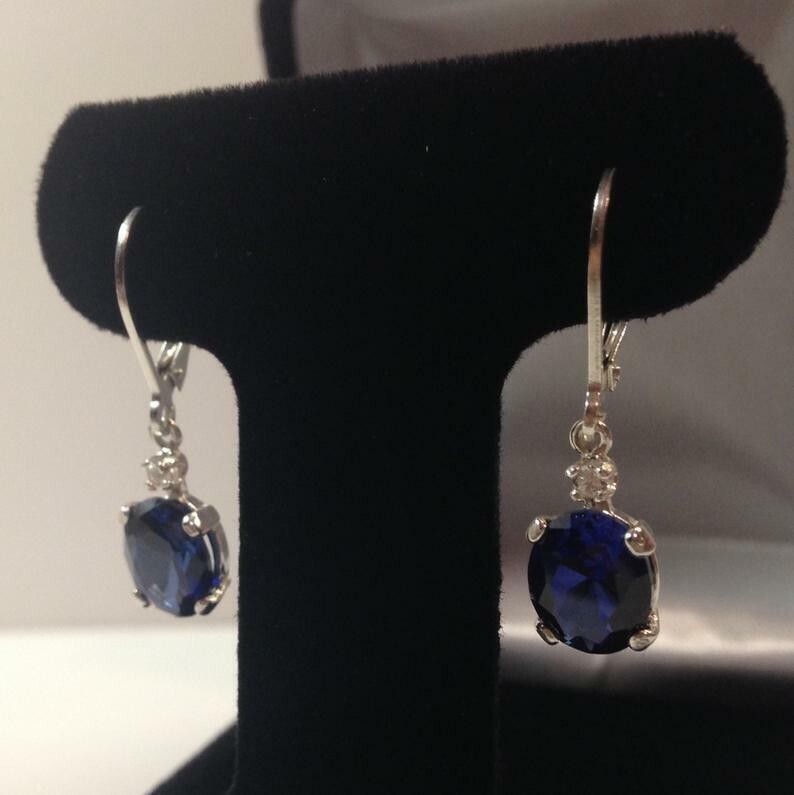 Lab-Created 925 Sterling Silver 6Ct Blue Sapphire Gemstone Antique Earring