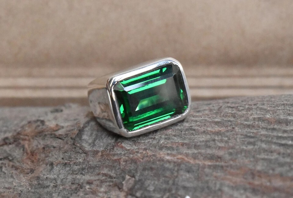 925 Sterling Silver Lab creted 7.25 Ct Emerald Handmade Mens Ring