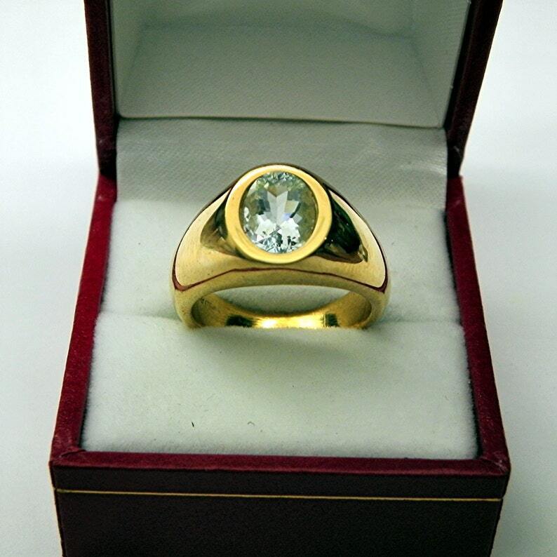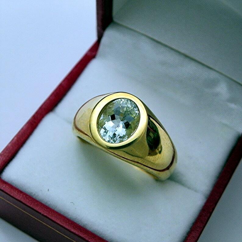 AAAA Blue Aquamarine 9x7mm 1.68 Carats in Heavy 18K Yellow gold MAN'S ring