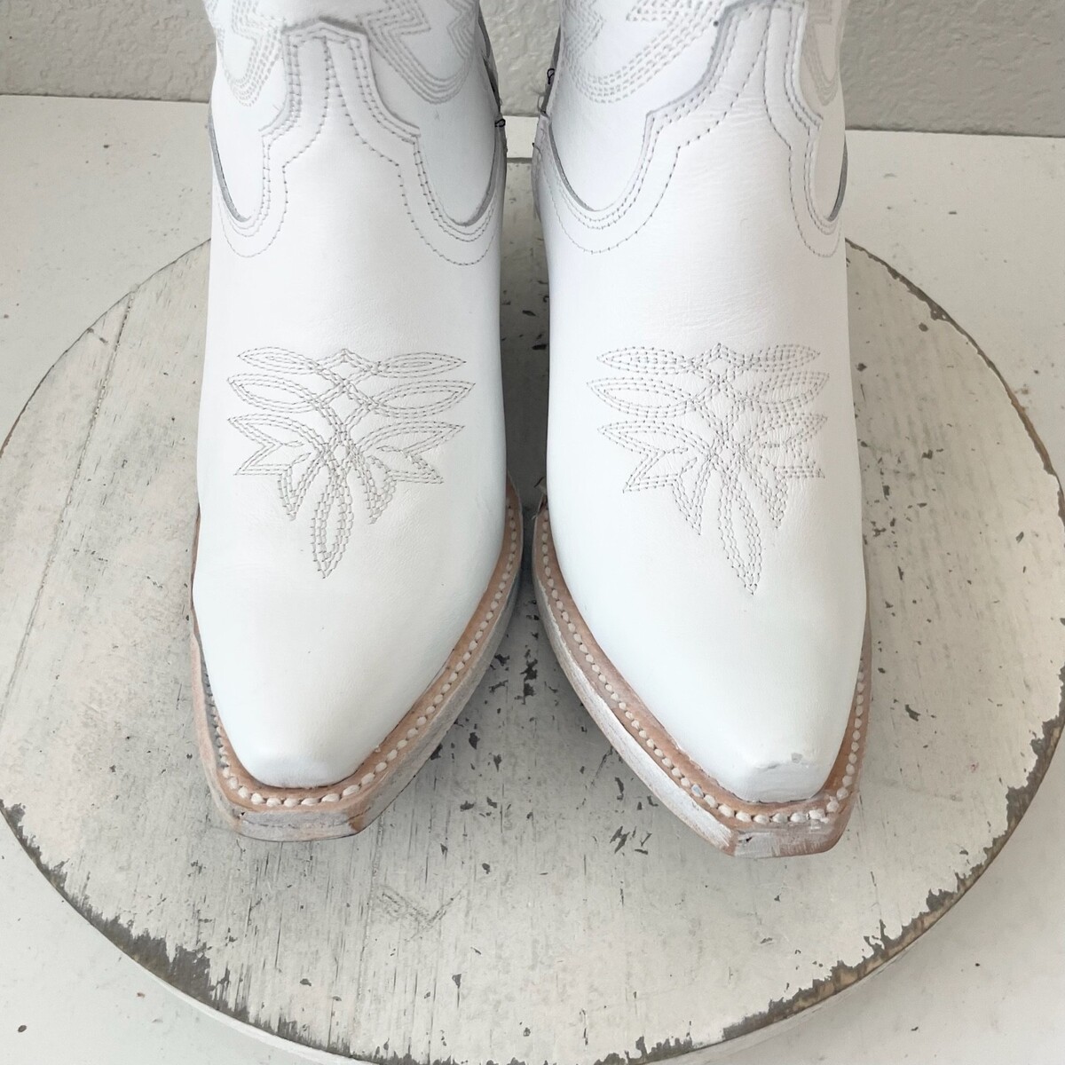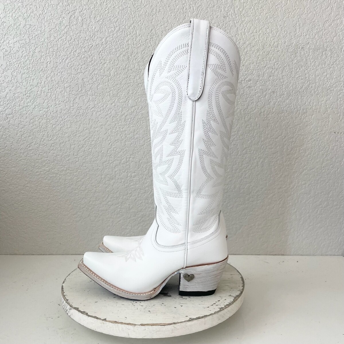 Lane MEGAN MORONEY Boots - SMOKESHOW Womens Cowboy Boots in Matte White Leather with a Western Snip Toe, 15" Mid Calf Tall shaft with Zipper Closure