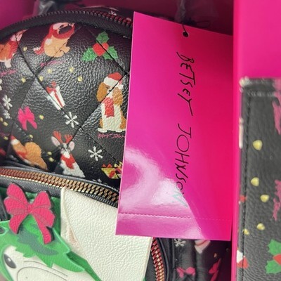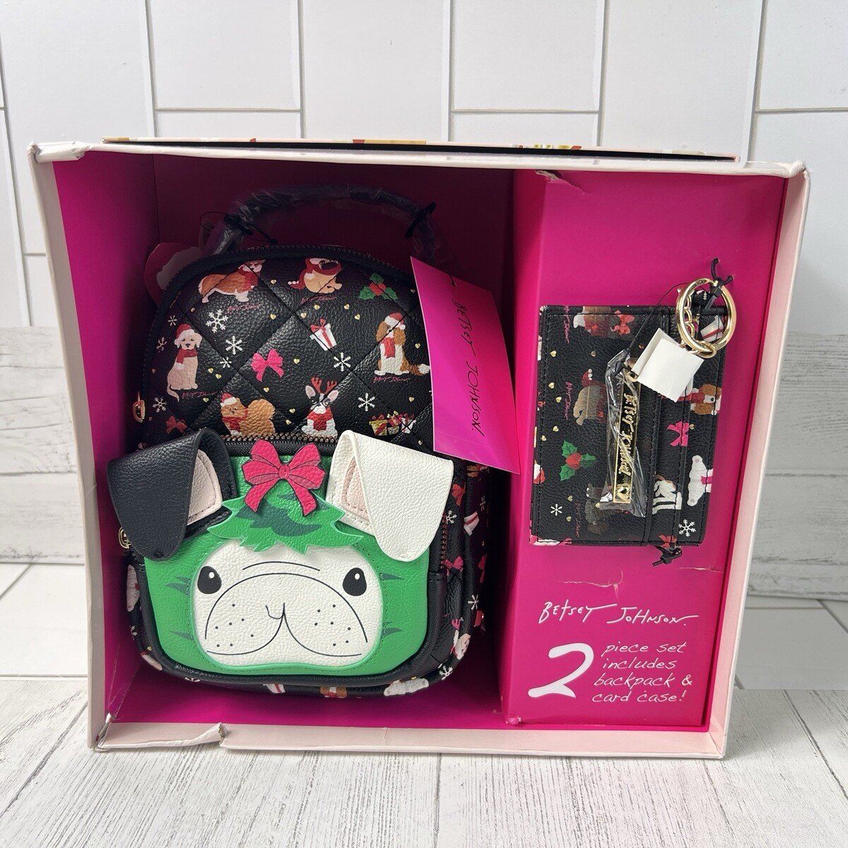 BETSEY JOHNSON Mini Backpack Card Case Set Christmas French Bulldog New