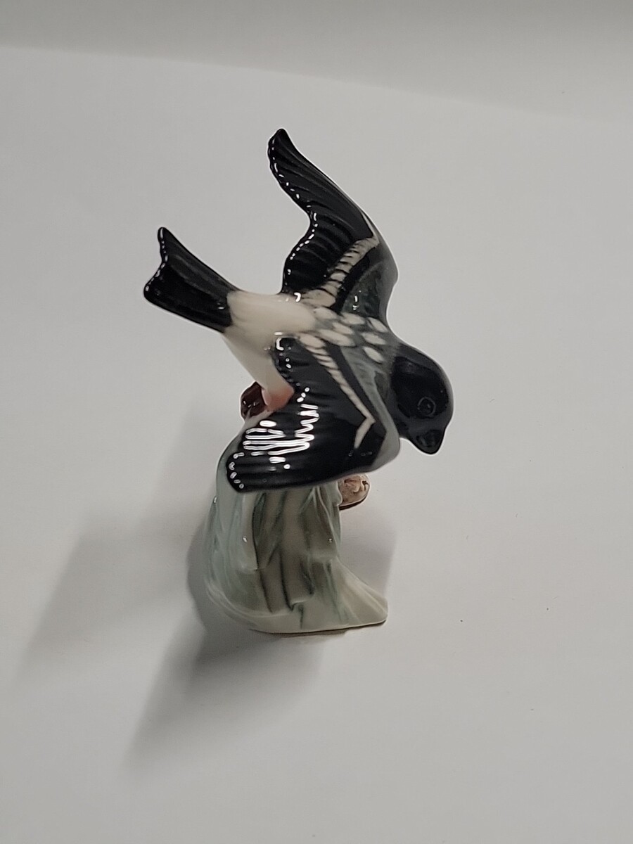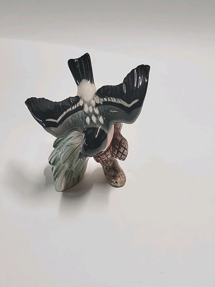 The Vintage Goebel CV62 BULLFINCH figurine features a charming design of a bullfinch perched on pine cones, measuring 4 inches in length. Made of porcelain and manufactured in West Germany in 1962, this collectible item showcases the brand's quality craftsmanship. The multicolor theme adds a touch of vibrancy to the animal-themed piece, making it a unique and nostalgic addition to any decorative collection.