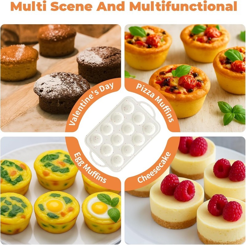 ?Versatile baking ?Whether you're baking muffins, cupcakes, mini quiches, or other sweet treats, POSOSTO muffin pan is up for the task. Withstands temperatures from -104F to 446F. BPA-free and safe for use in microwaves, ovens and refrigerators.