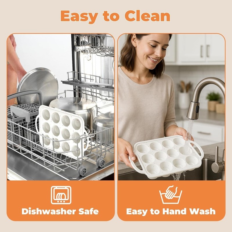 ?Easy to clean dishwasher safe?Due to the silicone material of the muffin pan itself, cleaning is very easy. Simply rinse with water or put it in the dishwasher. After cleaning, you can hang it on a hook to dry!