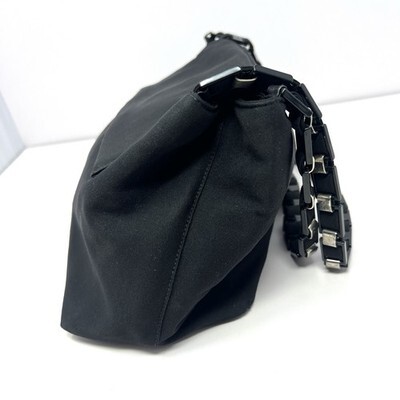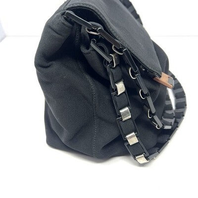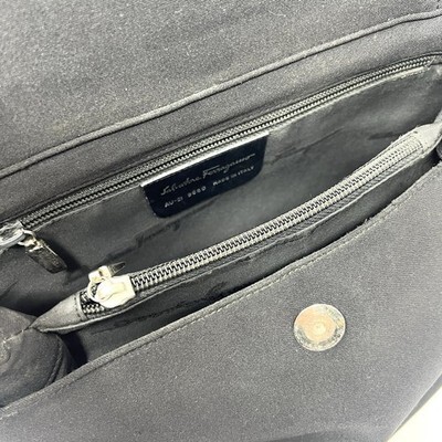 VTG Salvatore Ferragamo Vara Chain Shoulder Bag Black Canvas Fold Top AU-21 9660