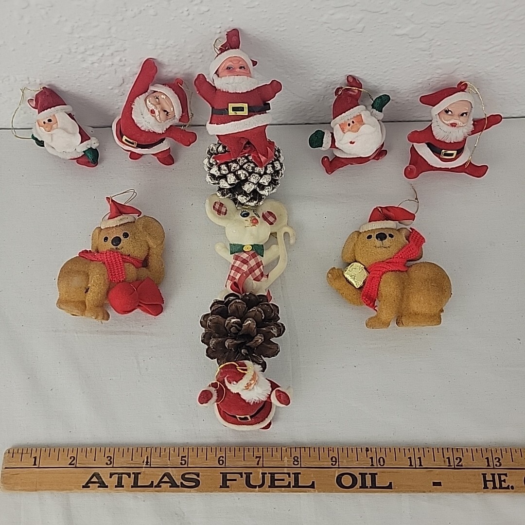 Velvet XMAS Ornament Lot Grandma Core Flocked Santa Bear Mouse Tree Pinecone EVC