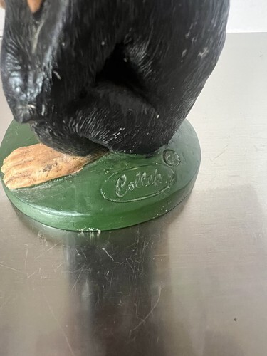 I see some missing paint here and there on the green platform but nothing major. The discoloring on the back is actually candle wax that scraped off from the texture of the figurine. Should wash off easily.