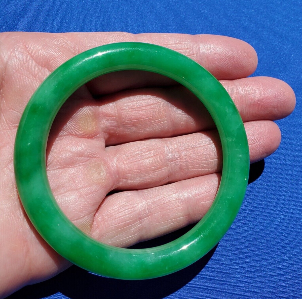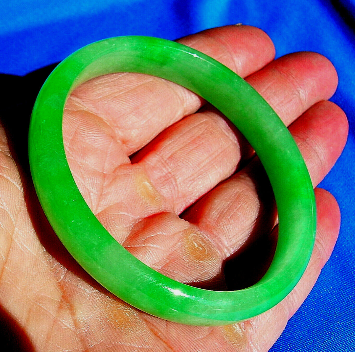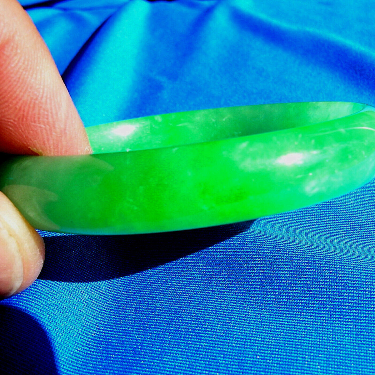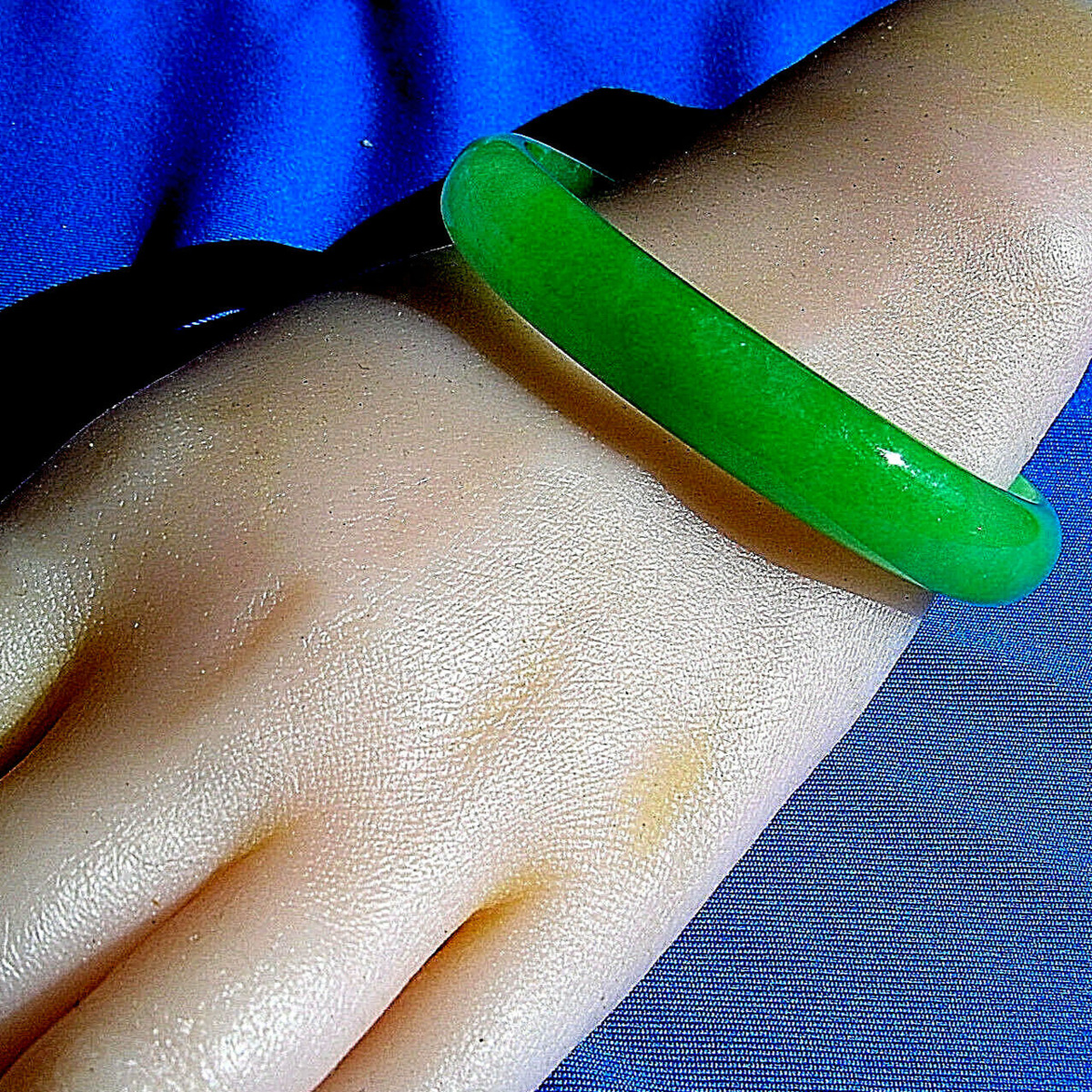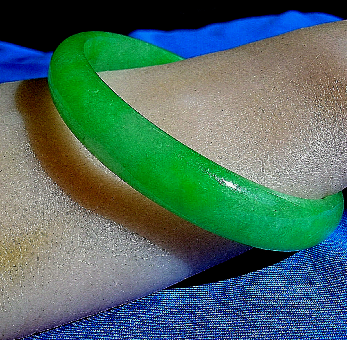 Earth mined Green Jadeite Jade Deco Bangle Antique semi Translucent Bracelet