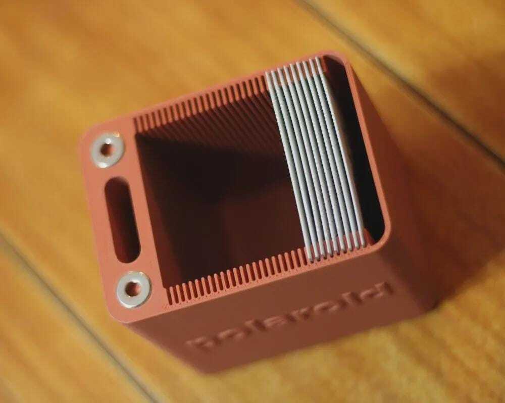 Features: Snug fit for Polaroid Go photos, removable lid with magnets to secure the top, minimalist design with guiding rails to slide the photos right in!