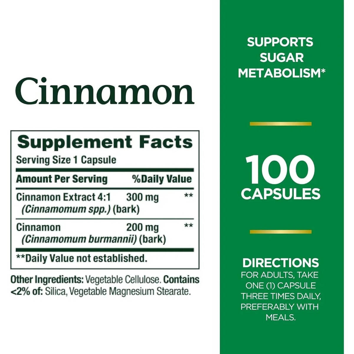 Cinnamon has been extensively used in traditional health practices and herbal preparations. Nature?s Bounty Cinnamon Capsules offers a 1,500mg serving of premium cinnamon extract, a great way to complement your diet with this popular herb. These easy-to-take capsules are perfect for people seeking a trustworthy cinnamon supplement created with high-quality source ingredients.
