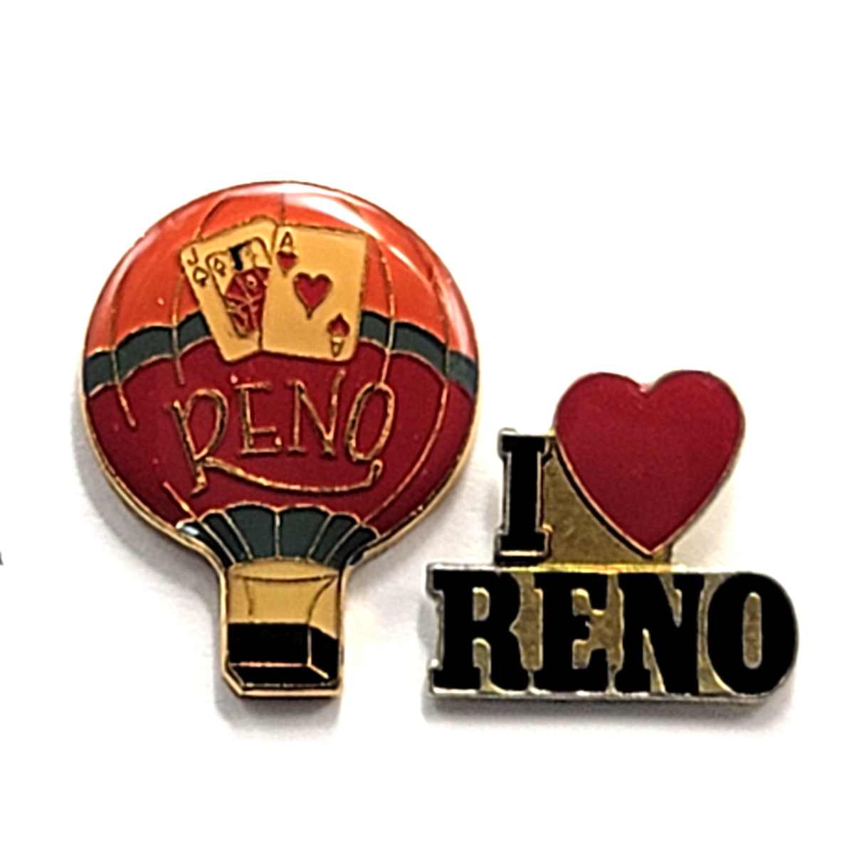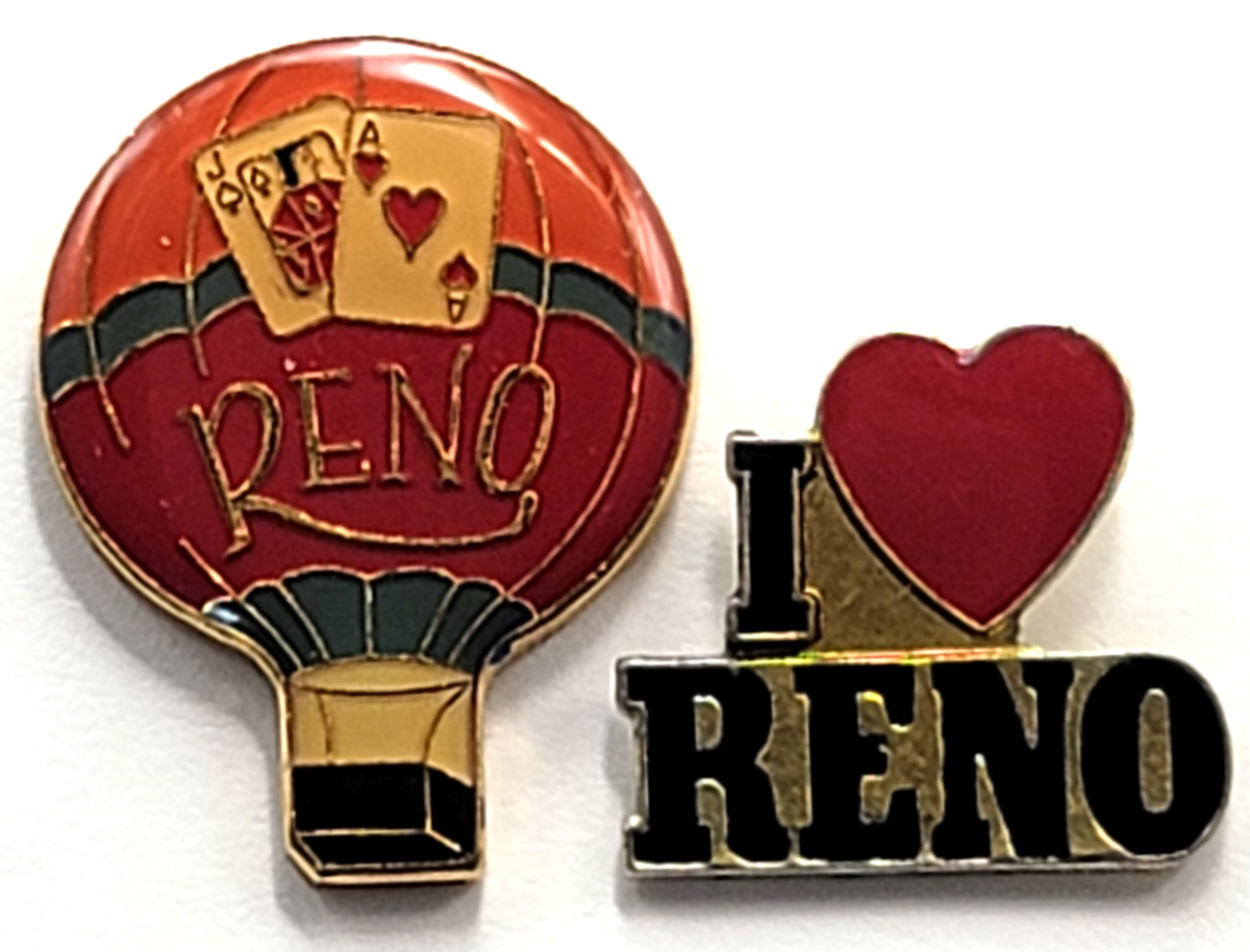 Lot of 2 Reno Nevada Souvenir Gold Tone Enamel Pins