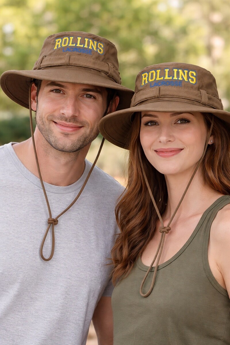 Durable boonie-style sun hat featuring Rollins Lacrosse embroidery on front and Rothco construction known for rugged outdoor gear. Wide brim provides sun protection while ventilation eyelets improve airflow. Lightweight and comfortable for hiking, fishing, tactical wear, or everyday casual use.