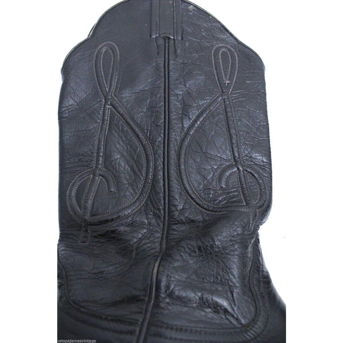 Vintage Hondo El Paso Women's Black Leather Western Boots with Musical Clef Notes - Size 8D mens, 10Women