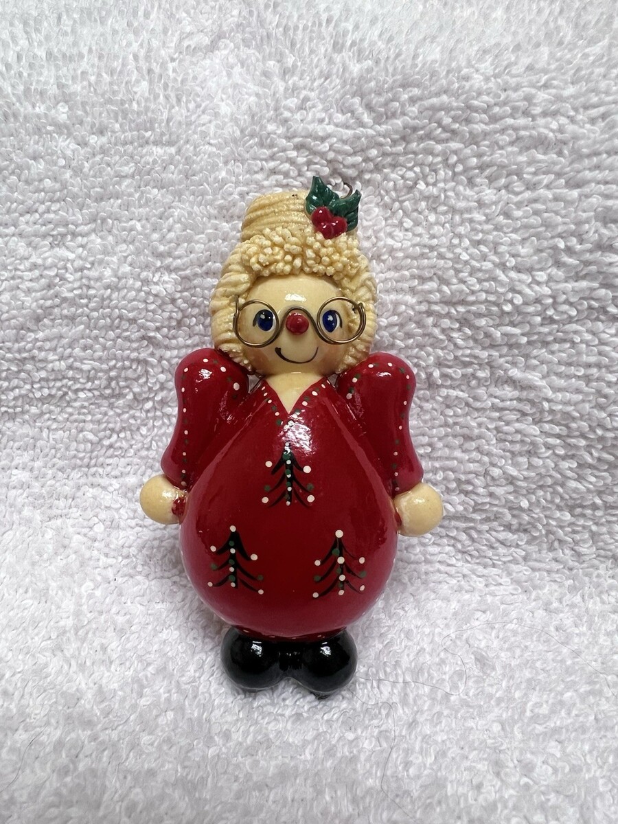 Handmade Painted Ceramic Clay Mrs Claus Ornament Artist Signed Monika 3 5/8"