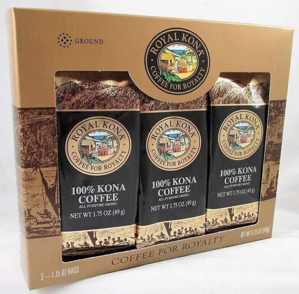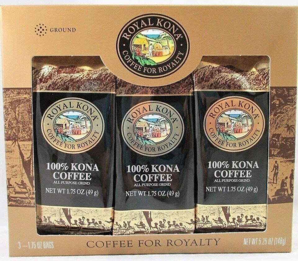 Royal Kona 100% Kona Coffee Gift Pack - Medium Roast, Ground Coffee, 3 Bags (1.75 oz Each)