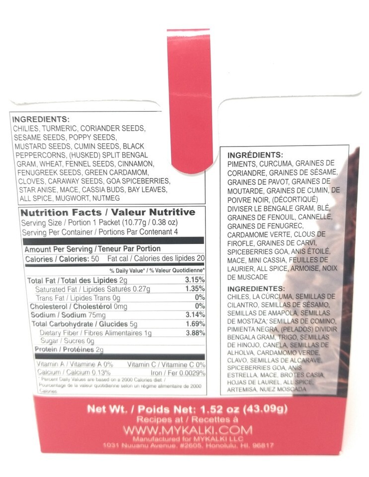 MYKALKI Indian Spice Blend for Meat 4 Packets 1.52oz Authentic Curry Seasoning