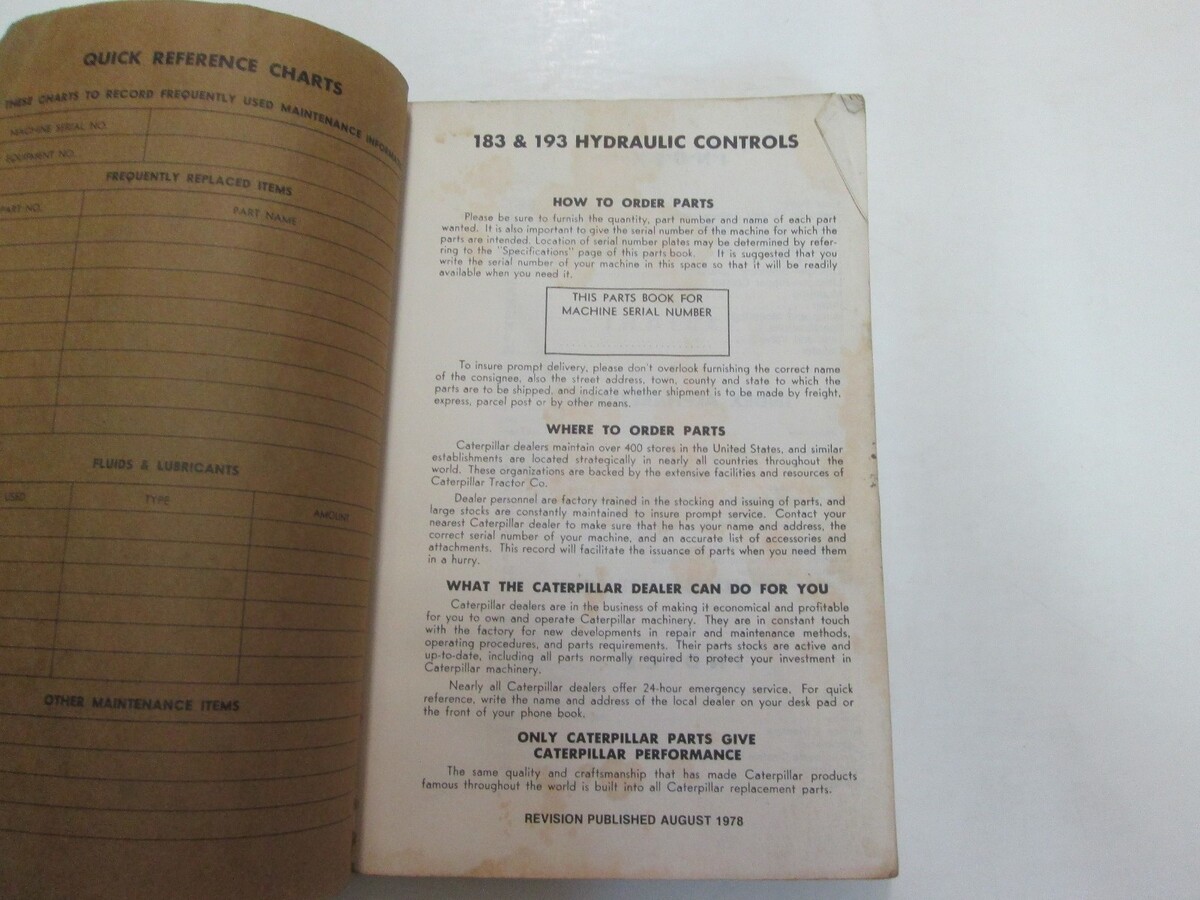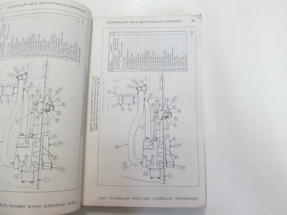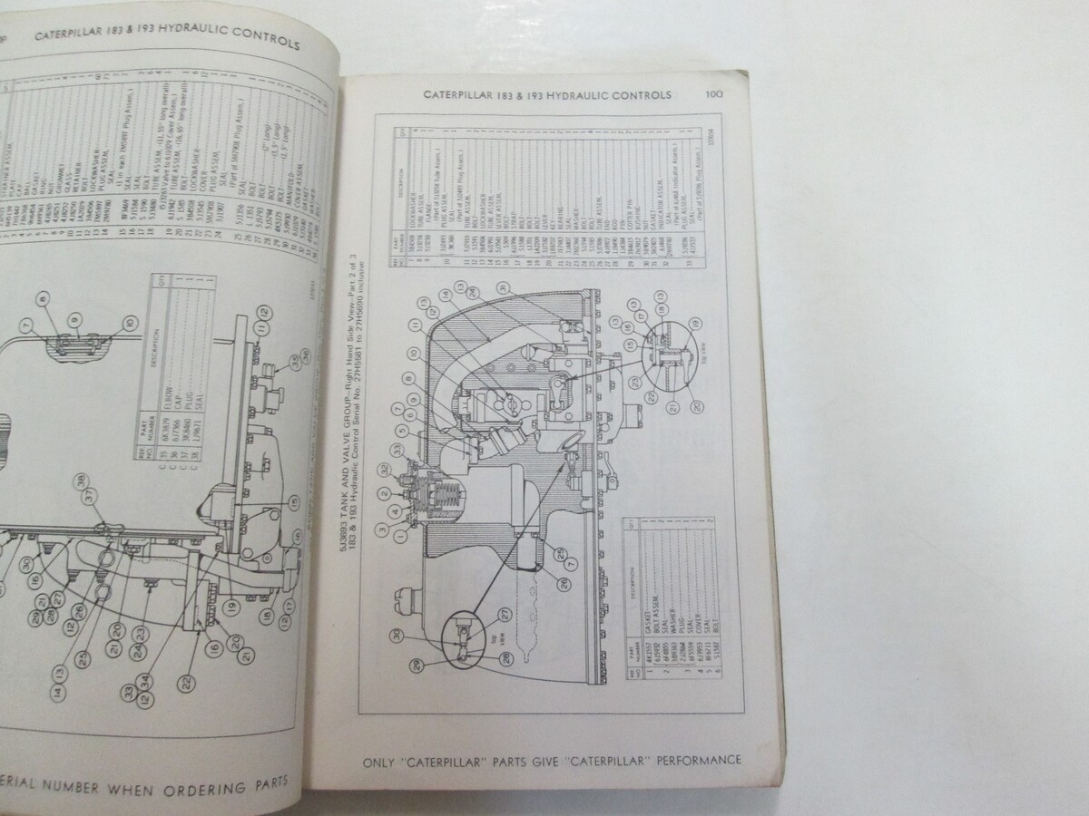 CATERPILLAR 183 193 HYDRAULIC CONTROLS PARTS BOOK 27H1 28H1 LAST BUILT WATER DAMAGE