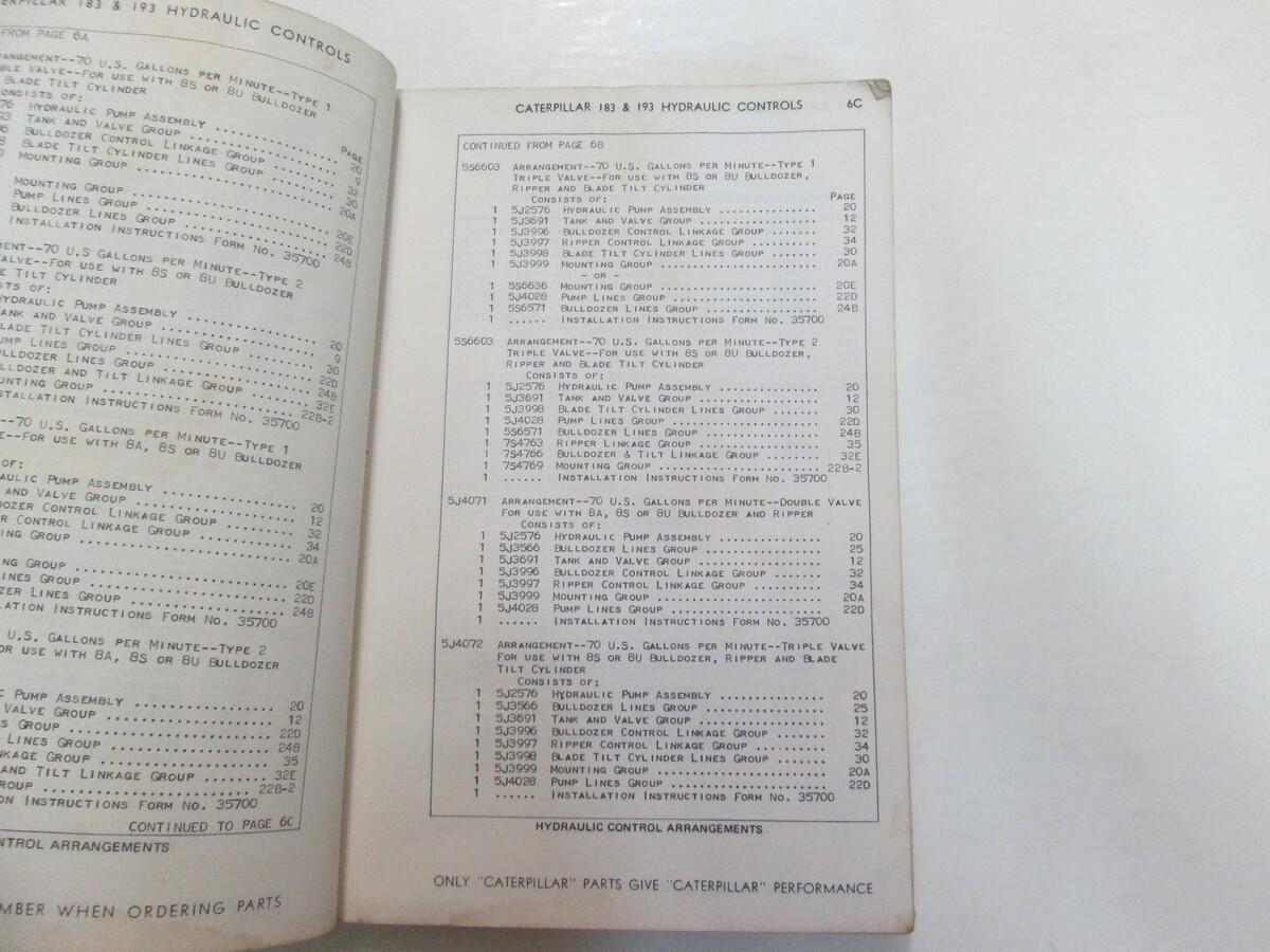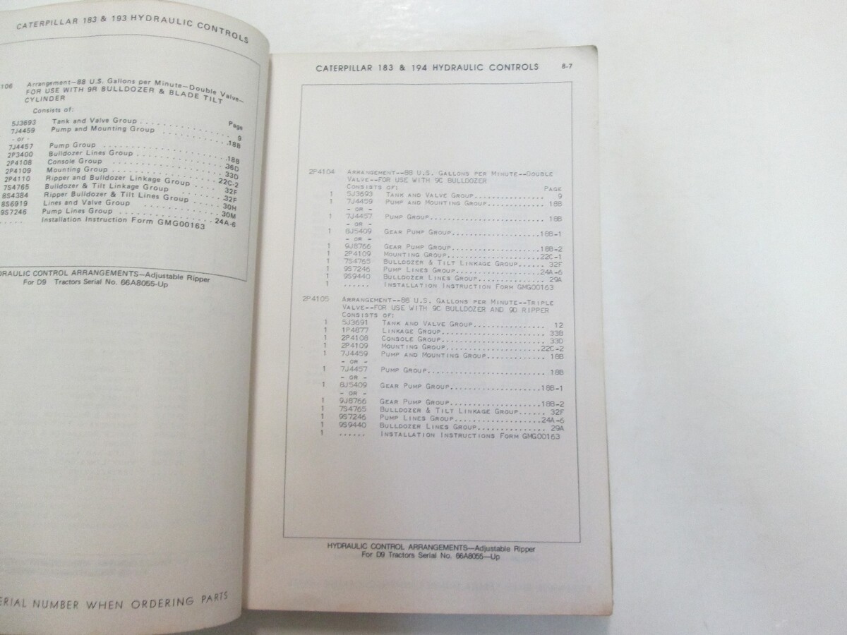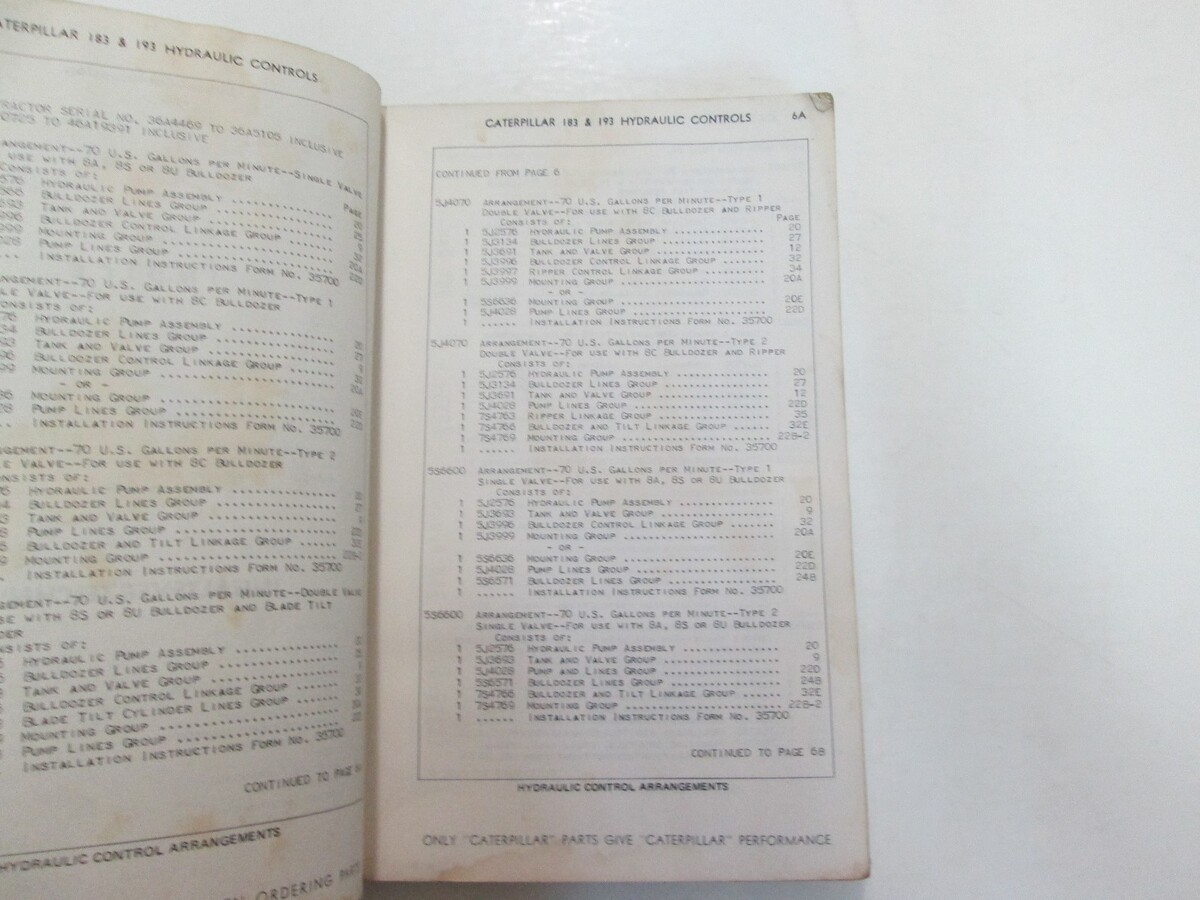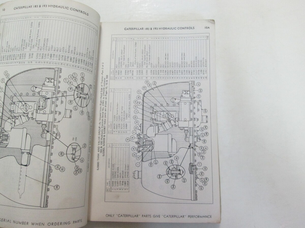 CATERPILLAR 183 193 HYDRAULIC CONTROLS PARTS BOOK 27H1 28H1 LAST BUILT WATER DAMAGE