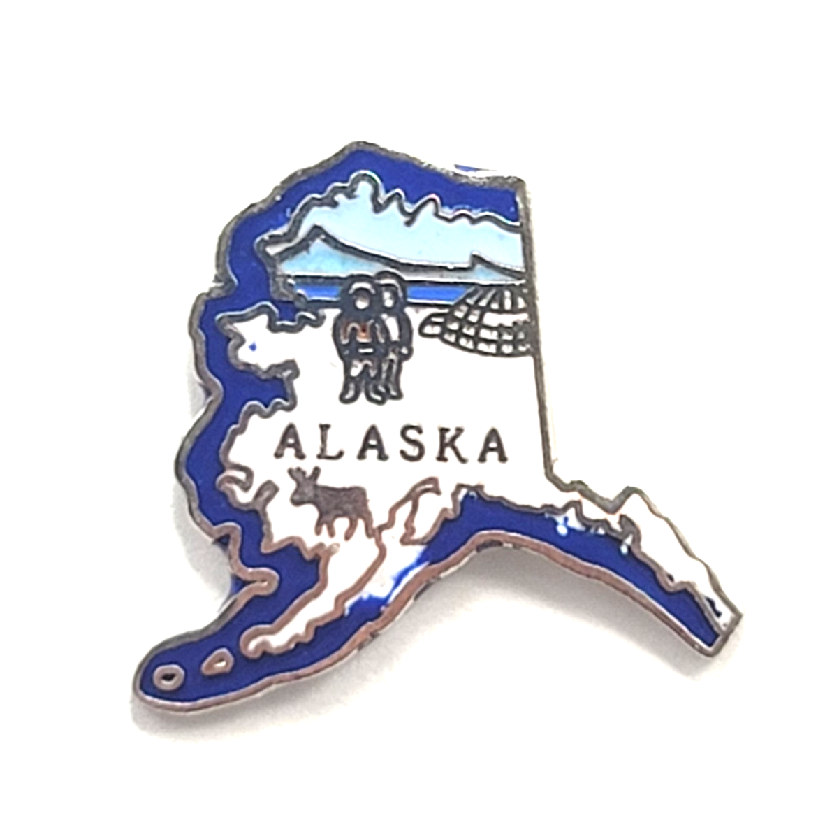 Alaska State Map Arctic Ice Igloo Scenic Northern Wildlife Travel Souvenir Pin