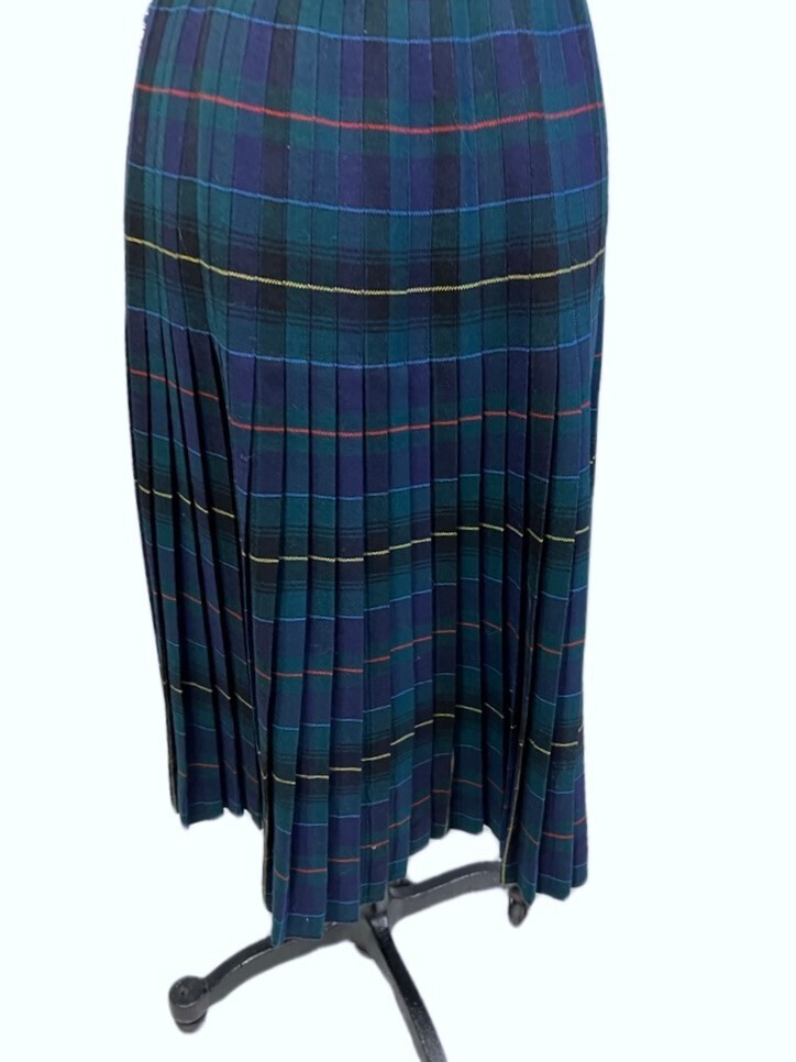 vtg Retro Aljean Women's S Dark Academia Scottish Plaid Midi Skirt Wool Wrap