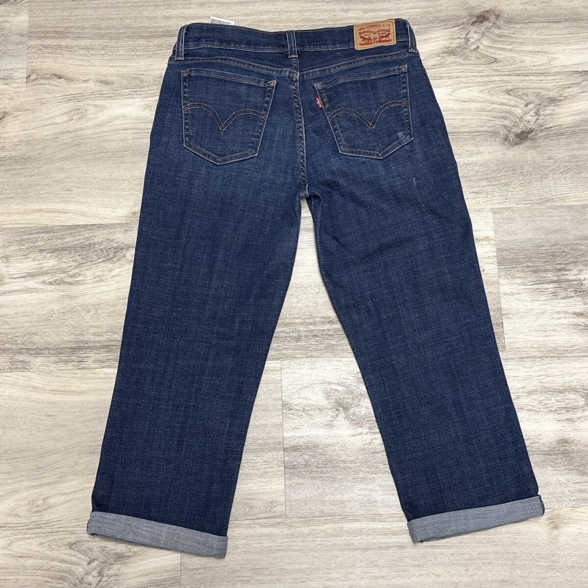Levis Strauss Womens Denim Jeans Capri Size 27 Mid Rise Dark Blue Stretch Cuffed