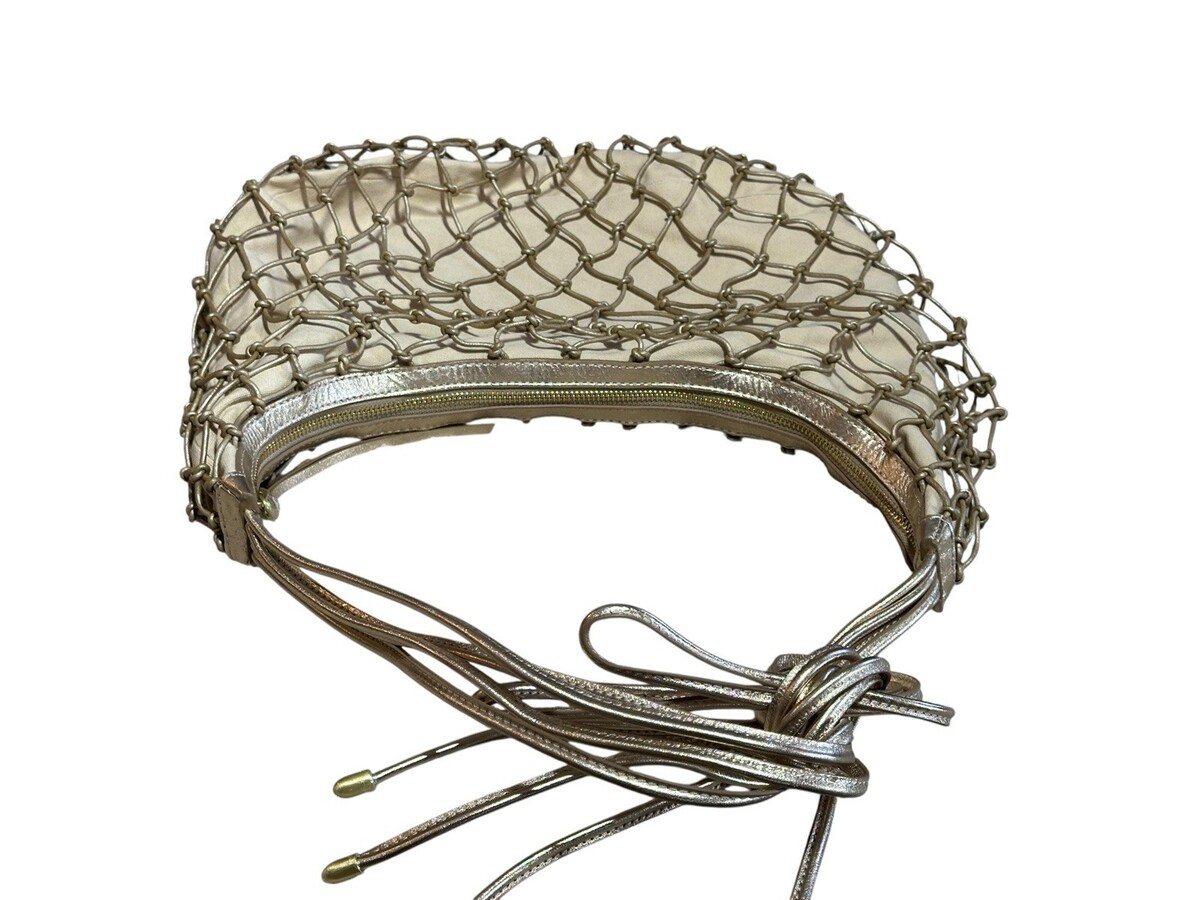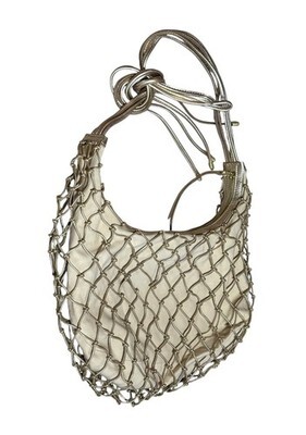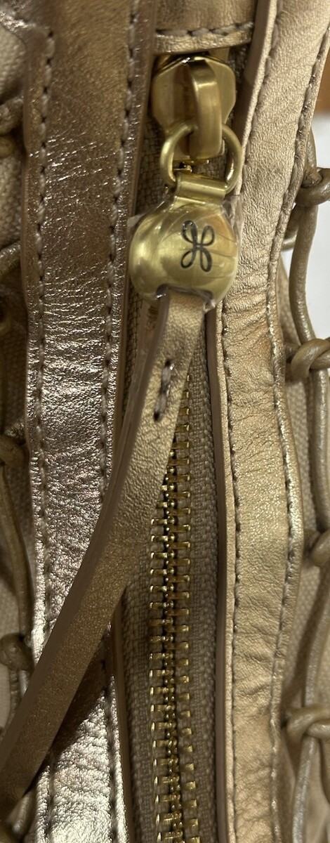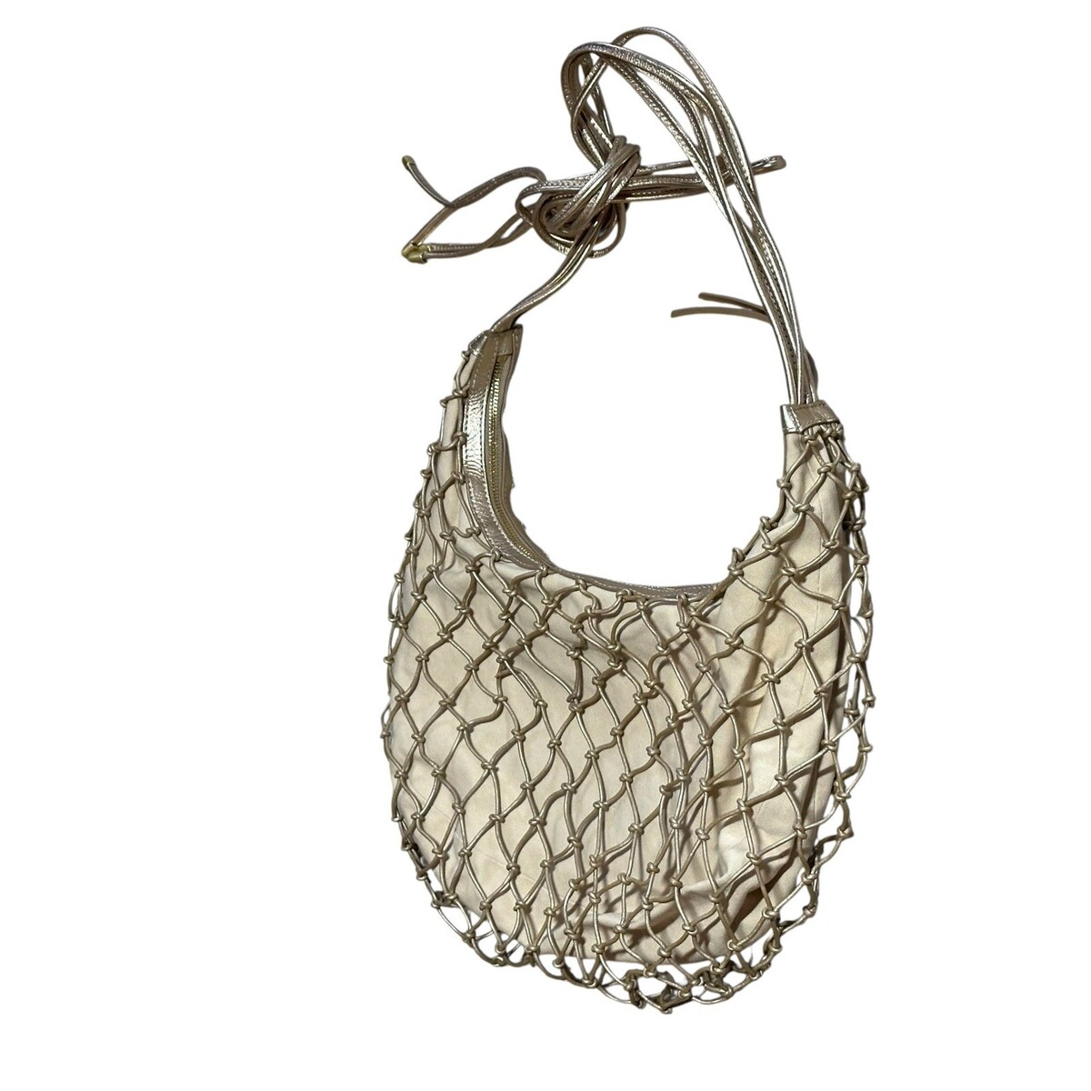 HOBO Kira Shoulder Bag Mystic Gold Leather Macrame Canvas Handbag Purse