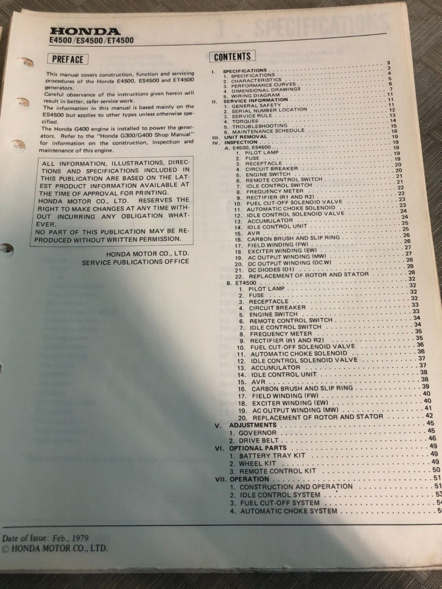 Honda Generator E4500 ES4500 ET4500 Service and 49 similar items