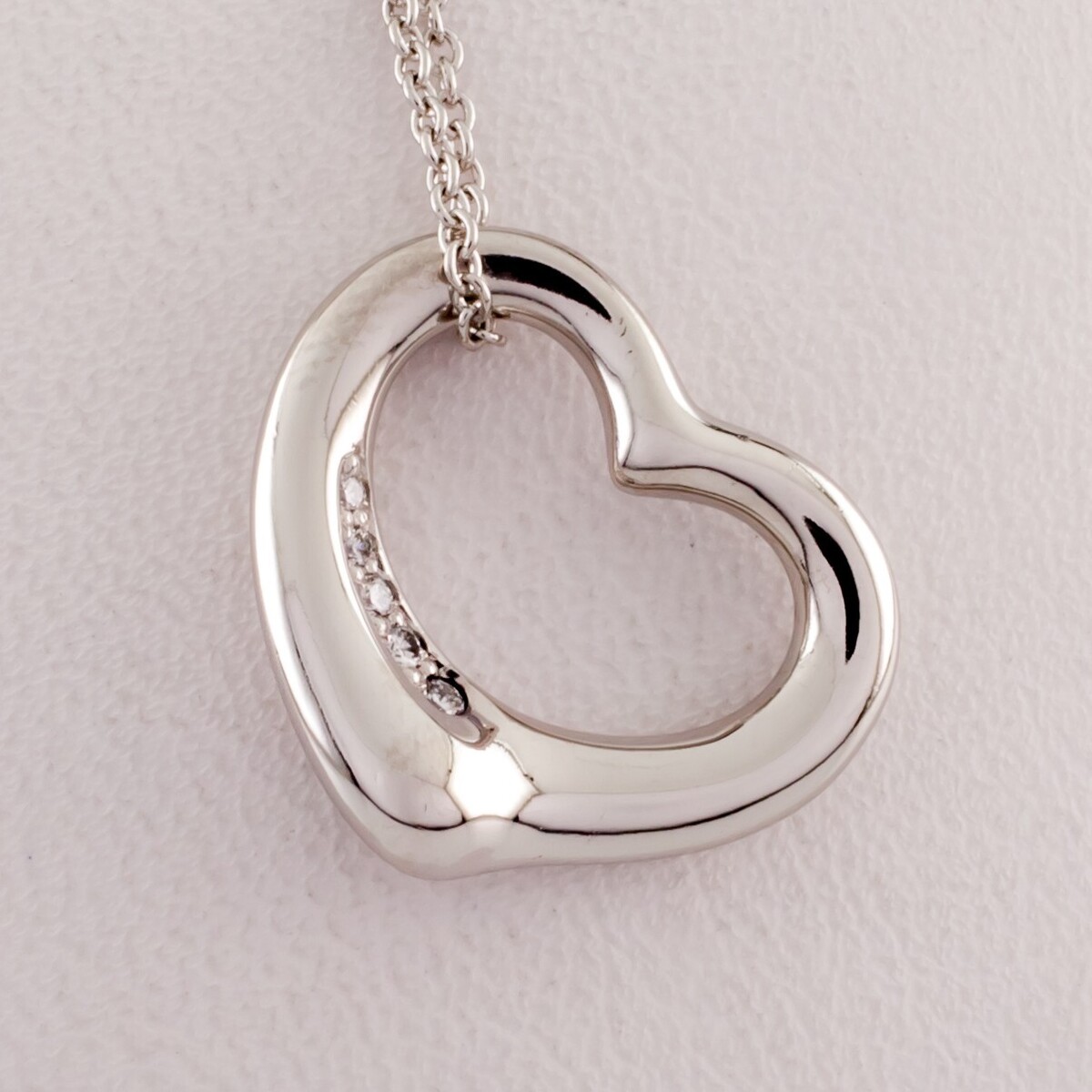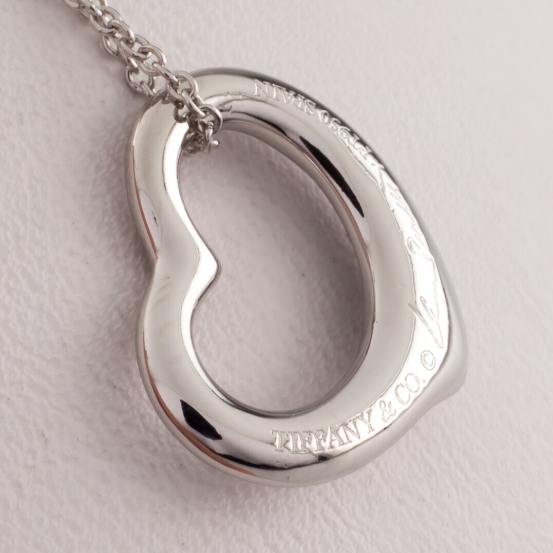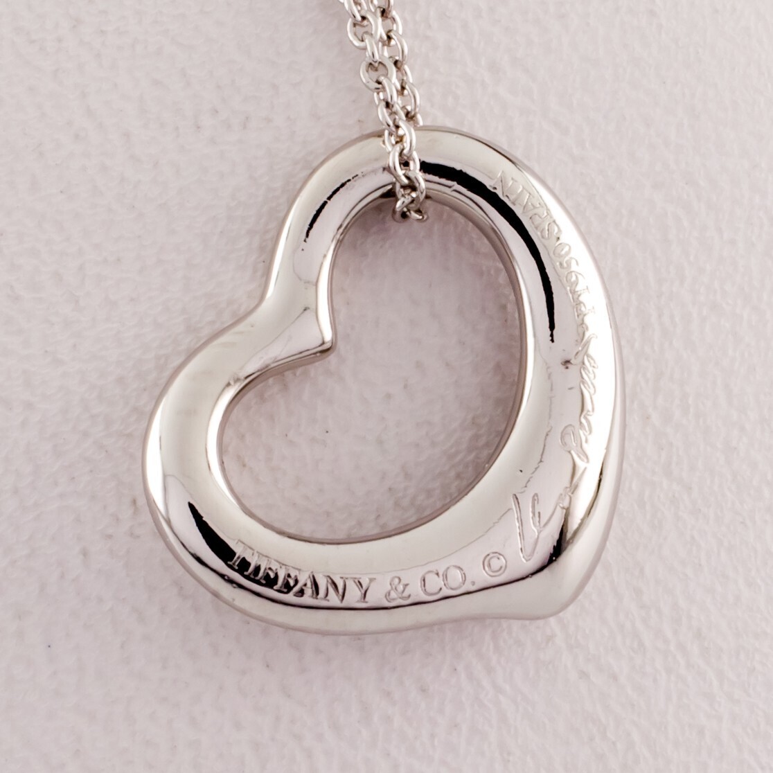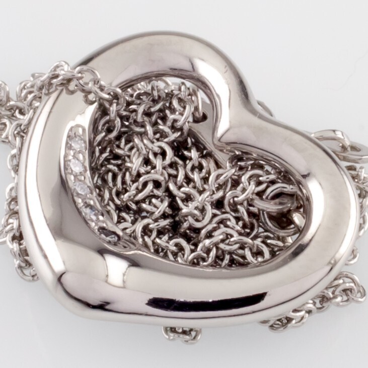 Tiffany & Co. Elsa Peretti Open Heart Platinum Pendant with Diamond and Chain