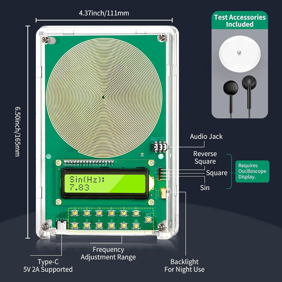 Wide Frequency Range: Adjustable from 0.01Hz to 200kHz to cater to all of your frequency healing needs.