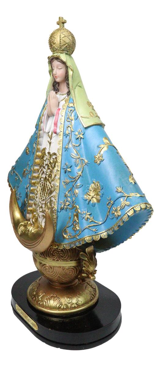 ? Celebrate one of Mexico's most cherished Marian devotions with this beautifully detailed Our Lady of San Juan de los Lagos Figurine. Standing gracefully on a crescent moon and crowned with a radiant golden crown, the Blessed Mother is depicted in reverent splendor-symbolizing her queenship, protection, and loving presence. Expertly sculpted with rich colors and fine artistry, this 12? tall statue rests upon a sturdy base accented with an elegant brass name plate for a distinguished finish.