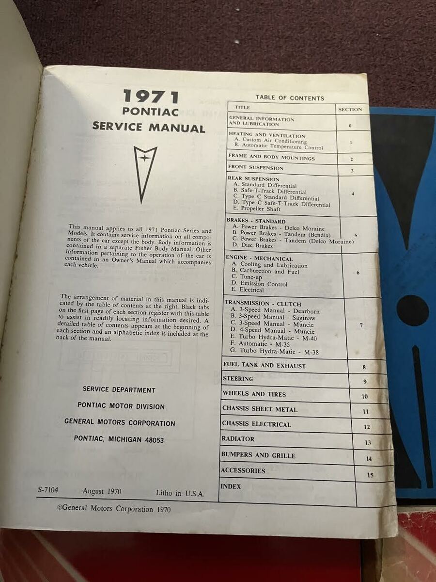Manuale di servizio Pontiac per tutti i modelli GM di fabbrica del 1971, Manuale di servizio supplemento Pontiac, Manuali del corpo Fisher del 1971