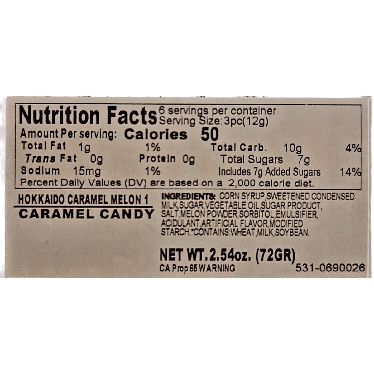 INGREDIENTS: Corn syrup, sweetened condensed milk, sugar, vegetable oil, sugar product, salt, melon powder, sorbitol, emulsifier, acidulant, artificial flavor, modified starch.