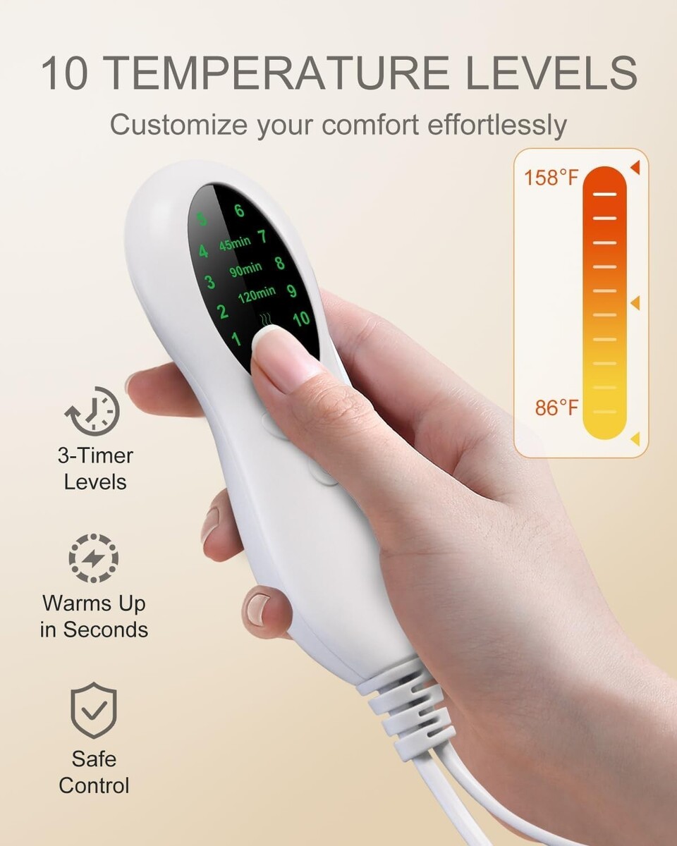 Features: With Temperature Settings,10 Heat Settings,Portable,Machine Washable,Removable Controller,Overheat Protection