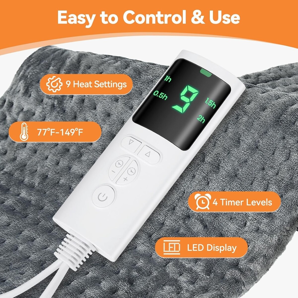 Features: With Temperature Settings,9 Heat Levels,4 Auto-Off Timers,Portable,Machine Washable,Dry or Moist Heat Therapy,User-Friendly Design,Intuitive Controls