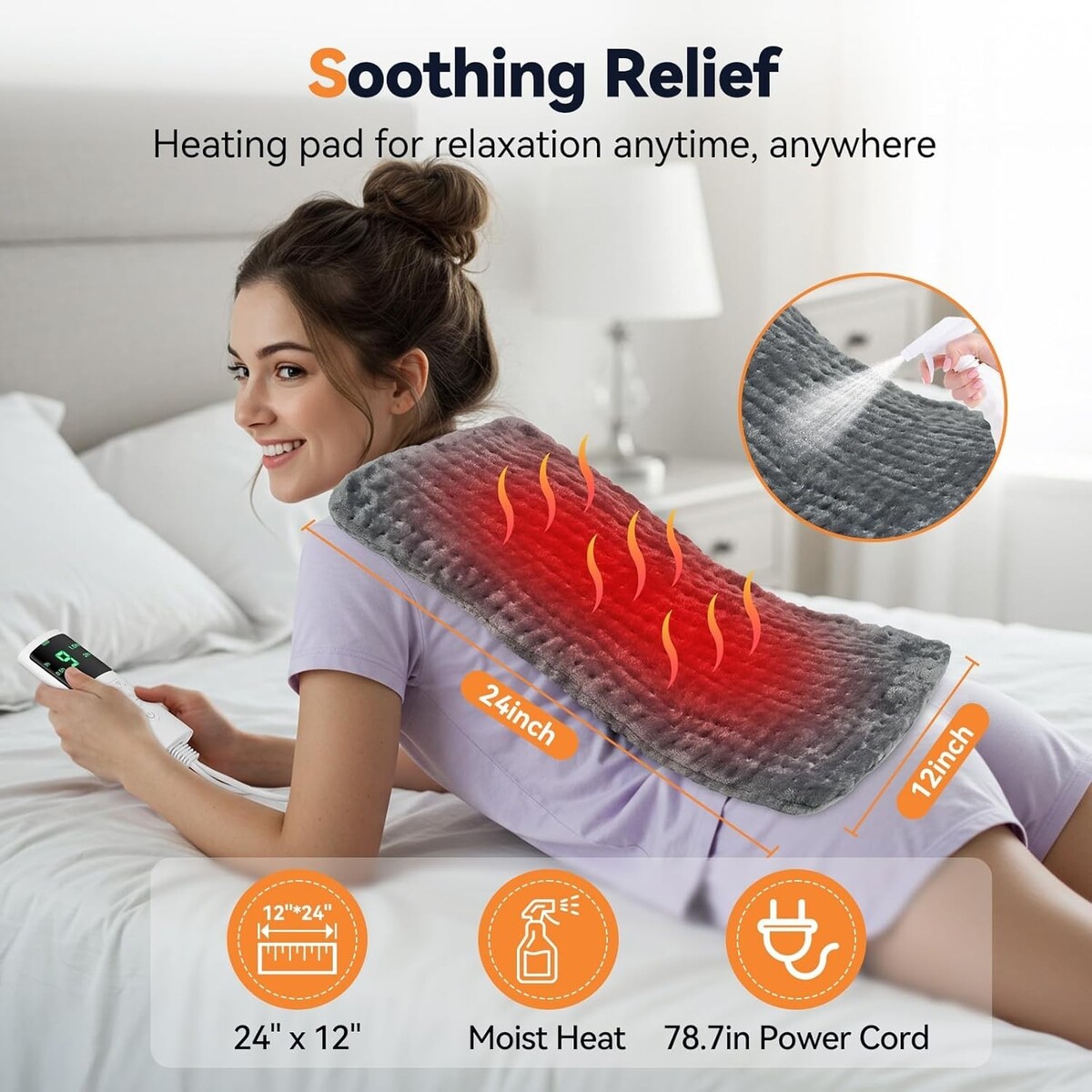 Portable Grey Heating Pad 12x24" - Customizable Heat Therapy for Pain Relief