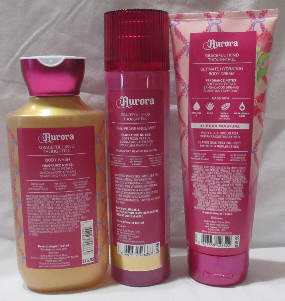 Bath & Body Works Wash Cream Fragrance Mist Set Lot 3 Disney Princess AURORA