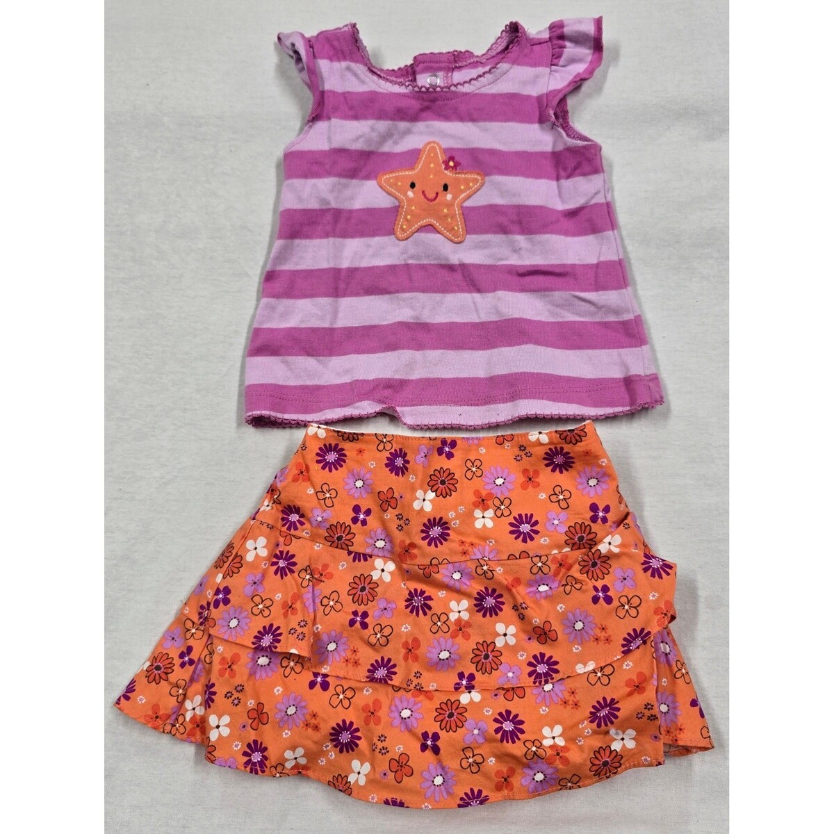 Keywords: Baby Girl, Summer, Beach, Nautical, Floral, Starfish, Romper, Sun Hat, Tiered Skirt, Old Navy, Miniwear, 0-6 Months, Outfit Lot, Infant Fashion, retro, vintage Y2K, unique