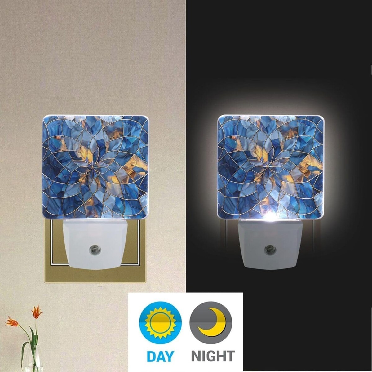 LED Dusk-to-Dawn Stained Glass Night Light Set - Perfect for Bedroom & Bathroom