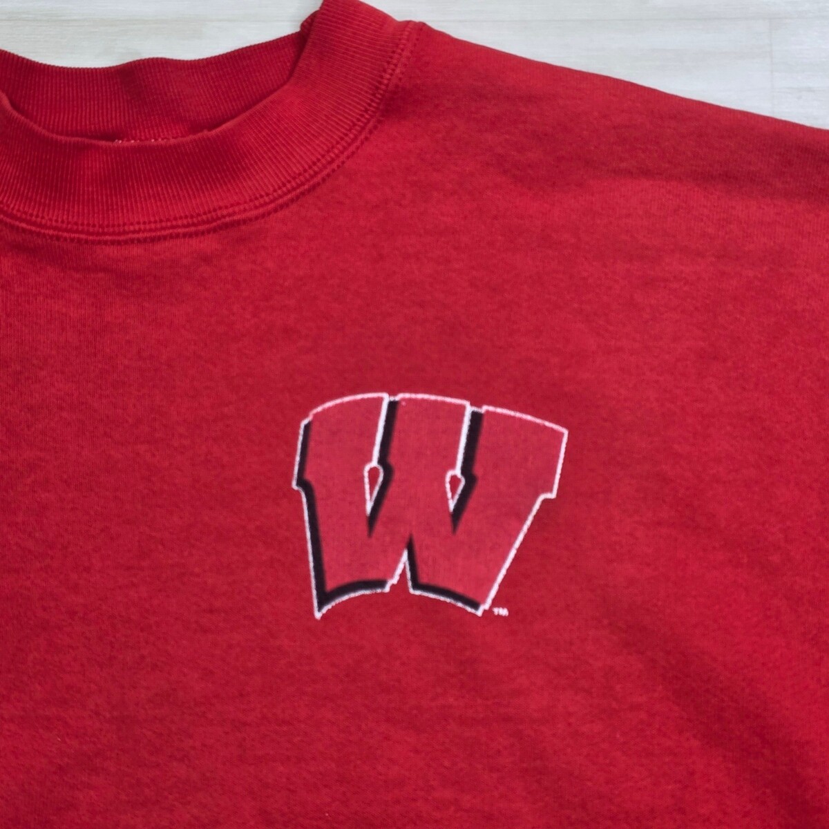 Keywords: Vintage, 90s, Collegiate, Streetwear, University of Wisconsin, Badgers, NCAA, Made in USA, Salem Sportswear, Red Sweatshirt, Athleisure, Retro Sports