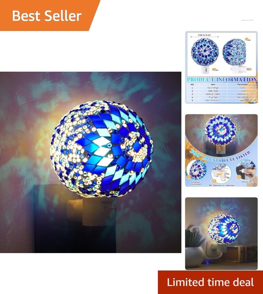 Exquisite Glass Sphere Design: Crafted from beautifully designed glass spheres, this Moroccan night light immerses you in the elegance of Turkish aesthetics.